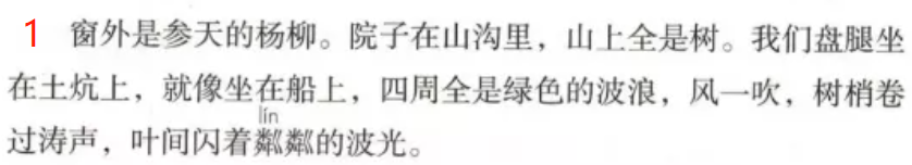 1.开头写绿山绿林,参天的杨柳,绿色的波浪,一幅万古长青的画面,暗扣老人的成就。2.以“我”的位置和视线写四周的树,非常巧妙地点明了人物、环境。青山不老批注