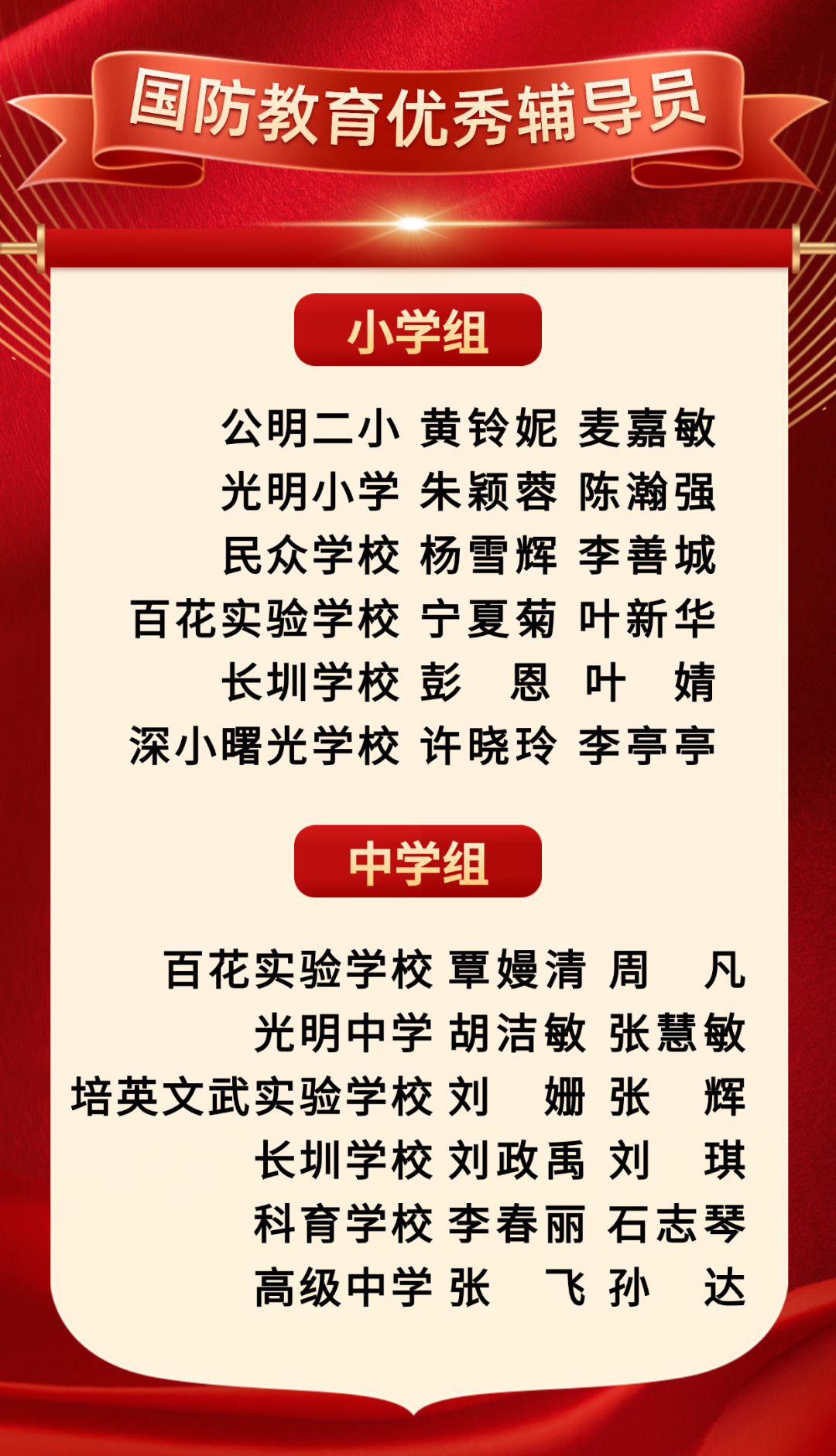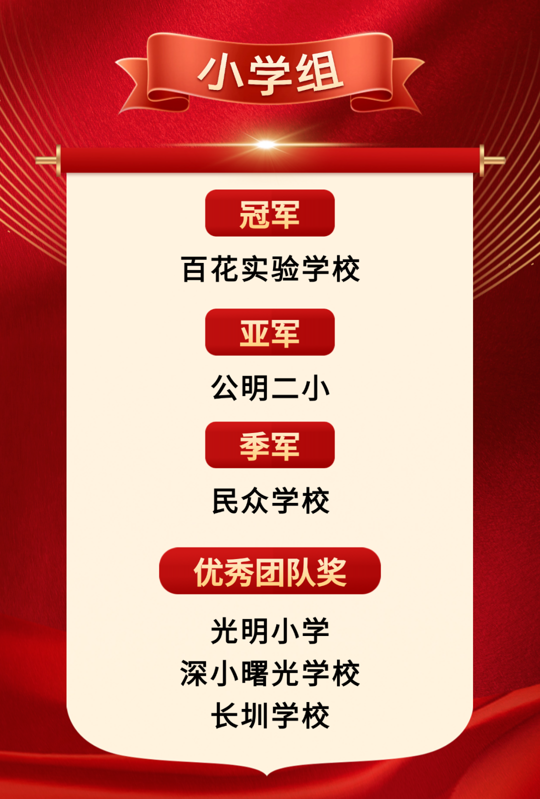 点击关注我们哦 10月24日 “强国复兴·光明有我” 2024年第六届光明区中小学生 国防知识竞赛总决赛 在光明区举行 本届赛事采用“赛前训练+理论知识竞赛+赛前集训+技能科目展演”的独特组织模式,以“线上选拔赛+线下总决赛”的赛制规则为框架,竞赛内容分为理论知识竞赛和军事和科学技能科目展演。 在赛前训练阶段 光明区62所学校11万余名学生 参加了赛前选拔赛 经过重重闯关 6所中学和6所小学脱颖而出 成功晋级总决赛 在总决赛环节,采取挑战型现场比拼形式,分个人必答、团队抢答、啦啦队助答、攻防守擂题、军事技能与科学技能展演五个环节。值得一提的是,本届总决赛中的技能展演科目,现场考核学生的军事技能、国防知识、动手能力、语言组织和表达能力以及团队精神面貌、协同情况等综合素质。 经过激烈角逐评选出 冠、亚、季军,中、小学组优秀团队奖 最佳组织奖与国防教育优秀辅导员 ↓↓↓ 光明学子以国防知识筑牢爱国长城 军体拳展出强国气势 “打背包”扛起责任担当 队列动作秀出青春纪律 让爱国精神在新时代熠熠生辉 为祖国的繁荣富强 贡献自己的力量与智慧! 来源:深圳国防教育、宝安日报、 光明区教育局 编辑:丁佳丽 审核:明媛、王翠玲 如需转载请注明来源