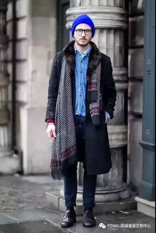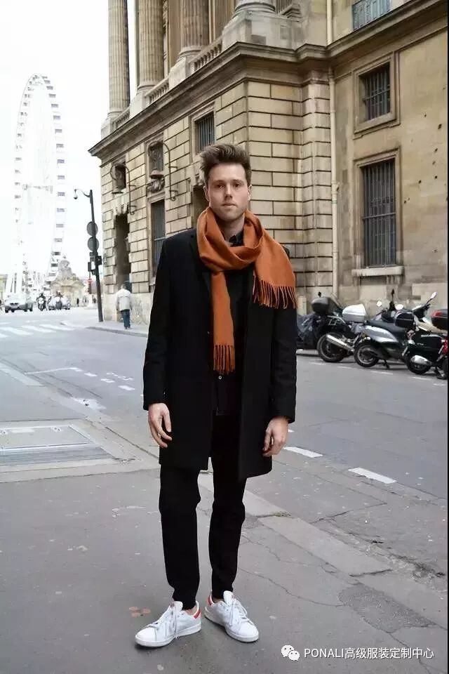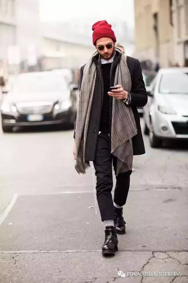 也可以直接披着在大衣上,反正男士围巾系 得越简单越凸显气场~