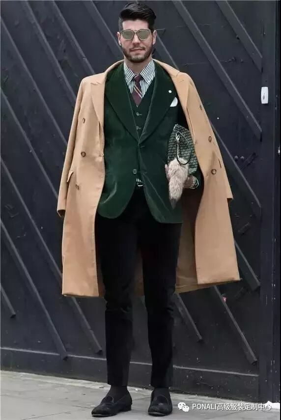 天鹅绒材质不仅是女性的专属,男生男士大衣搭配也能穿~
