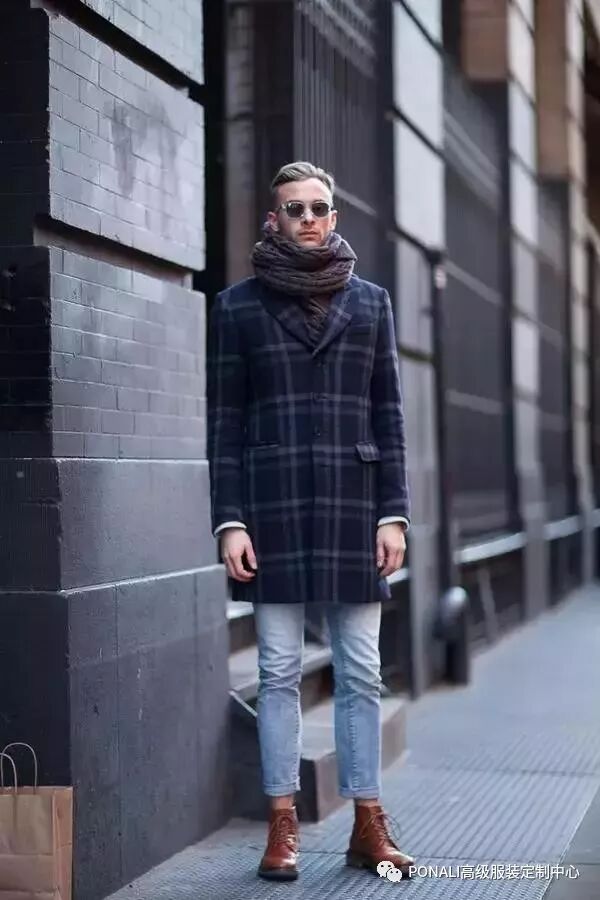 驼色毛衣搭配格纹大衣,一个雅痞型男的形象就这么被打造出来~