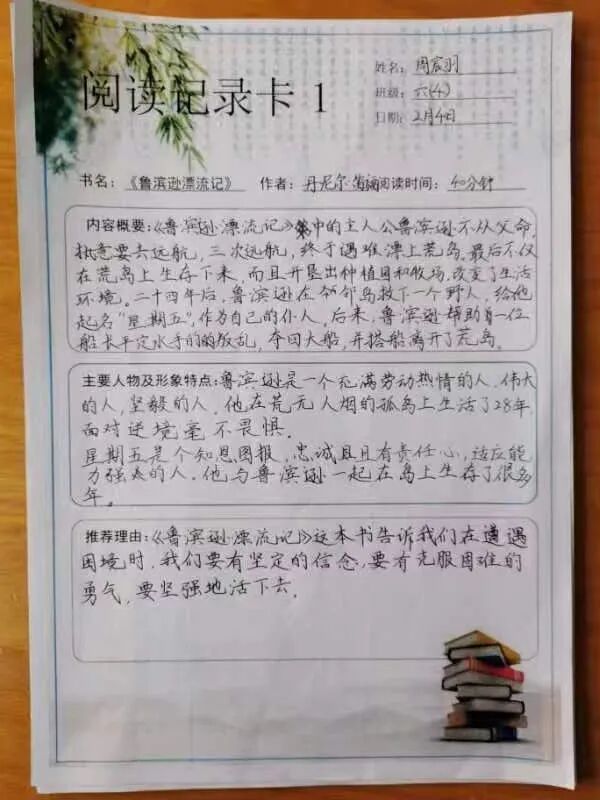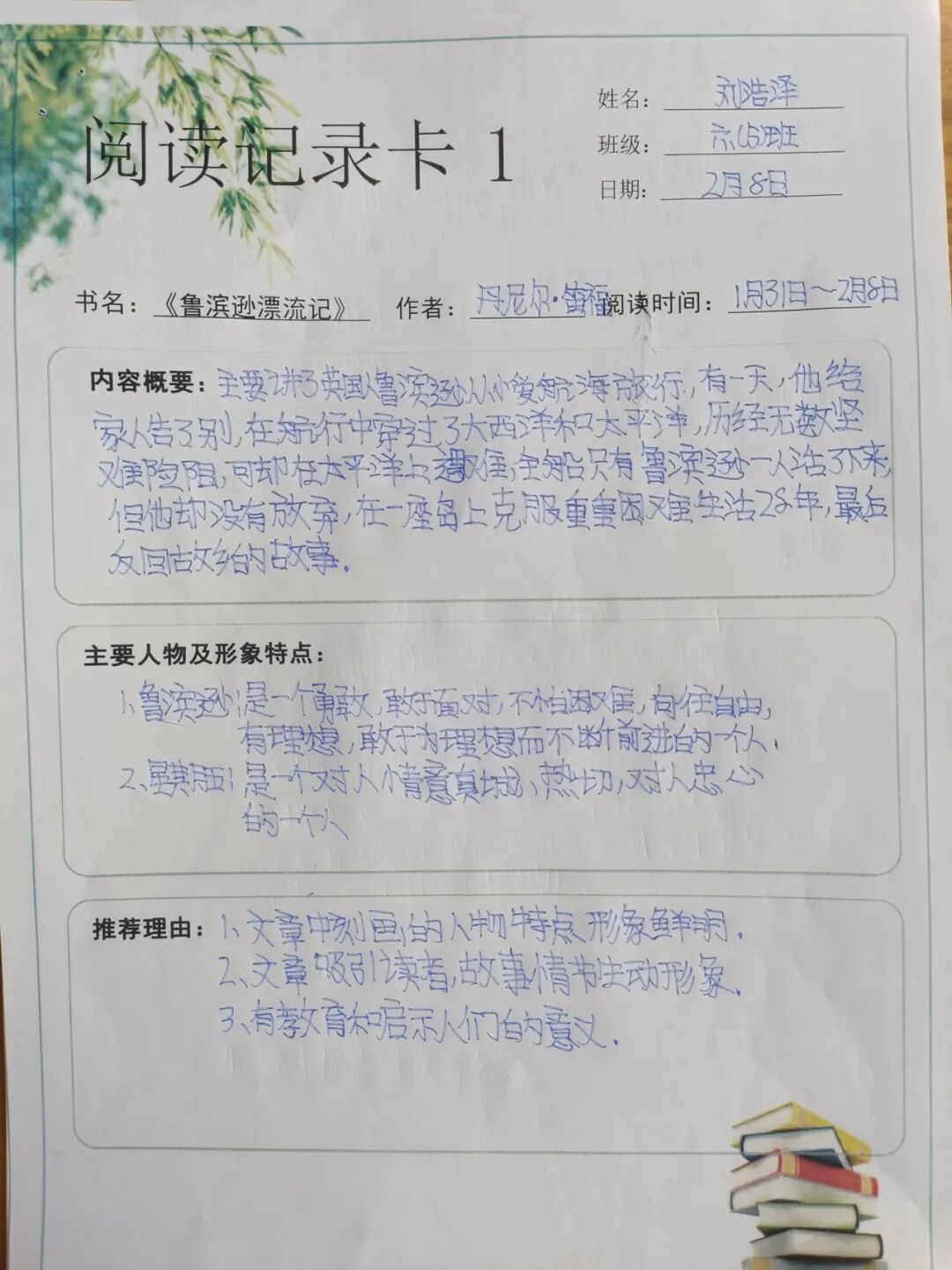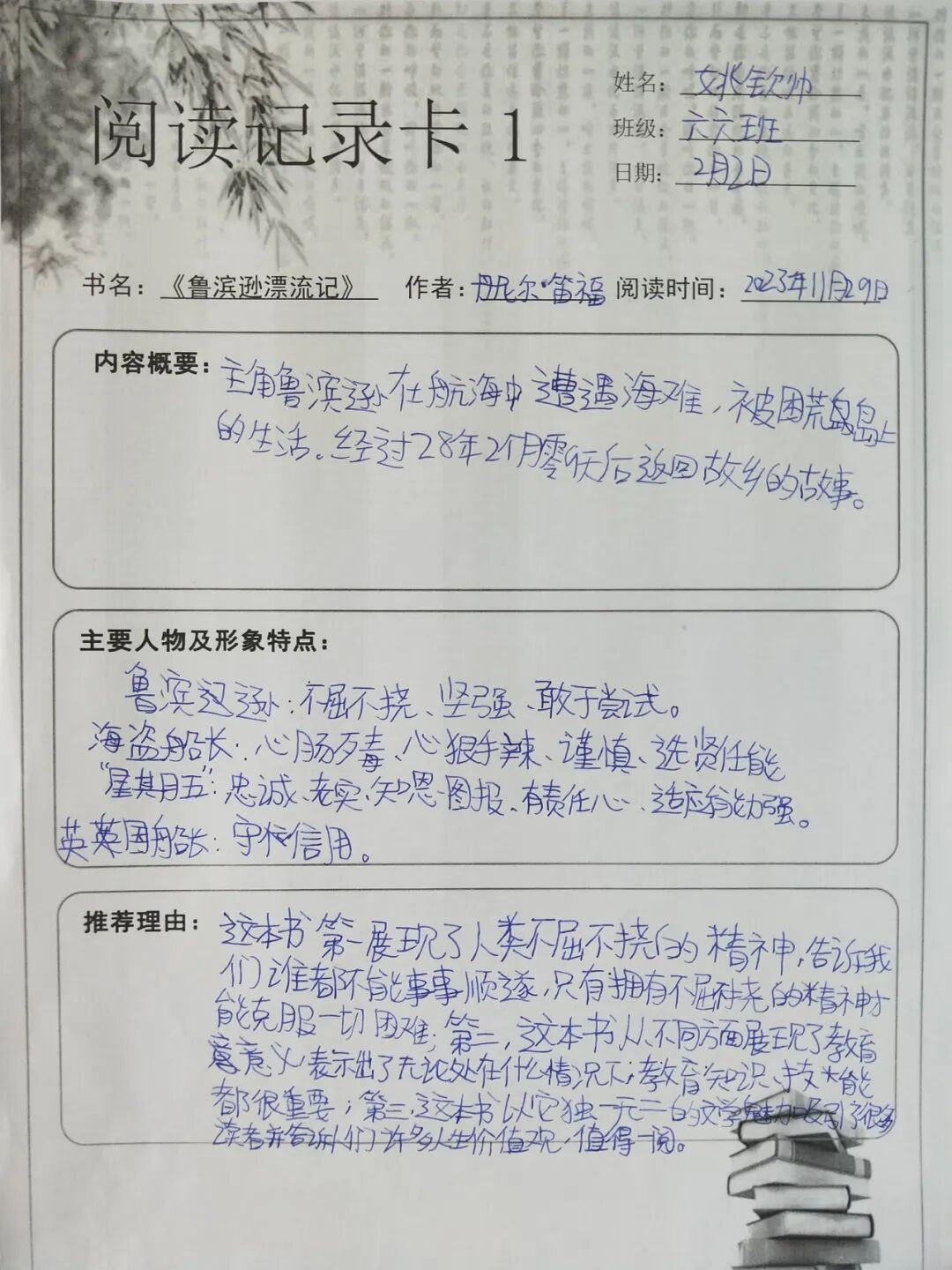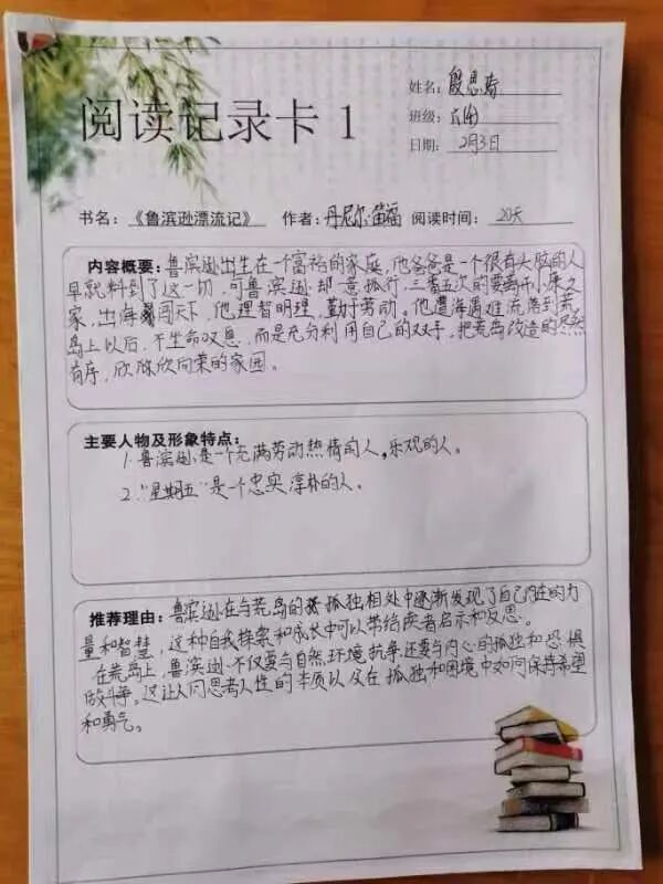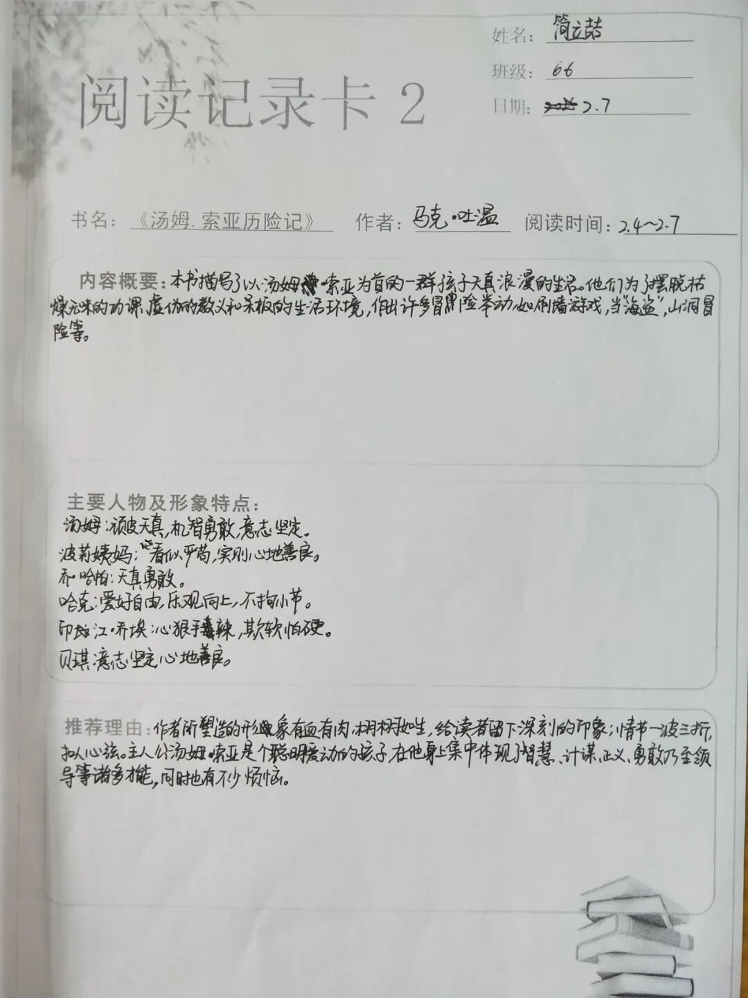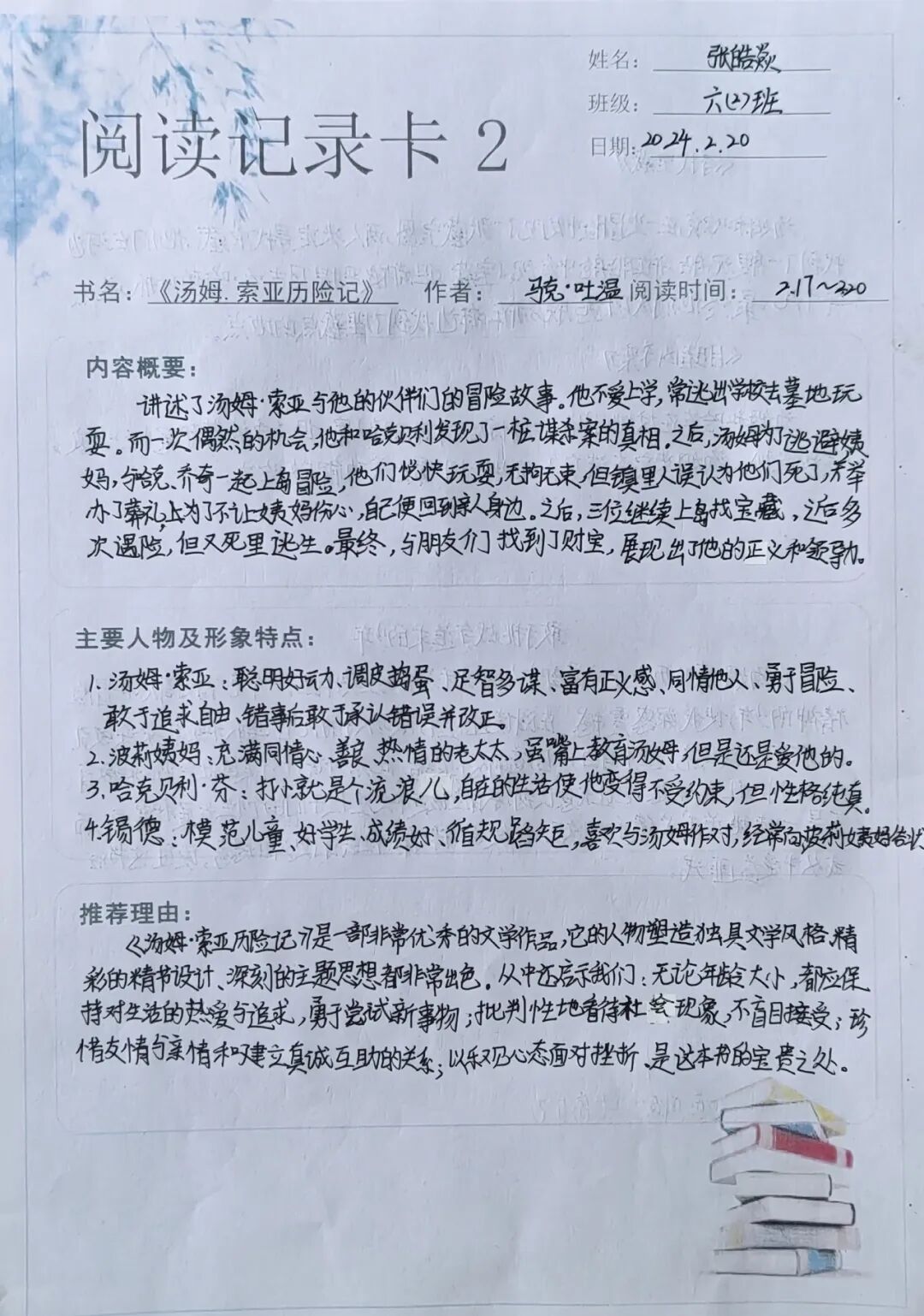 “立身以立学为先,立学以读书为本”。小学阶段是培养阅读习惯和阅读能力的黄金期,不仅要引导学生多读书、读好书,更要引导学生有效的读书。 针对六年级学情,六年级组语文教师站位学生阅读需求、阅读目标和阅读效果去考量,从内容概要、精彩语句、人物形象、印象深刻的情节以及读后感悟五个方面设计了阅读记录卡,引导学生在记录中积累,在记录中思考,在记录中感悟,在记录中成长。 一张张阅读记录卡让读书变得有深度有质感。孩子们在填写记录卡中加深了记忆、促进了理解、深入的感悟、有效的表达,从而更好地掌握书籍的精髓,提升阅读的能力和效果。同时,孩子们通过分享阅读记录卡,互相学习、交流、借鉴,形成了浓厚的阅读氛围。 六一班 六二班 六三班 六四班 六五班 六六班 本次阅读记录卡展示活动是学校书香校园系列活动的一个“缩影”,是持续助推学生阅读成长计划的一部分。学生们在享受中阅读,在阅读中成长,同时为书籍又增添了一道浓郁的书香。中心路小学学子将继续沉浸阅读、深入思考,让读书点亮心灵,书香润泽人生。 六一班:丁雯轩 卢悦宁 王岳新 任迪赫 张涵硕 六二班:张皓焱 张文约 李梓煊 吴筱萱 吕泽涵 六三班:张曼妮 李佳怡 肖雨菲 赵一霏 万乙儒 六四班:童话 周宸羽 徐国萱 殷思琦 马天阅 六五班:冯晨阳 刘浩泽 段童馨 白烜颖 佟思慕 六六班:杨佳昕 王子尧 姚钦帅 简立喆 李慕晨 供稿:黄珂 图片:六年级语文组 编辑:王凯红 责编:迟秋燕![]()