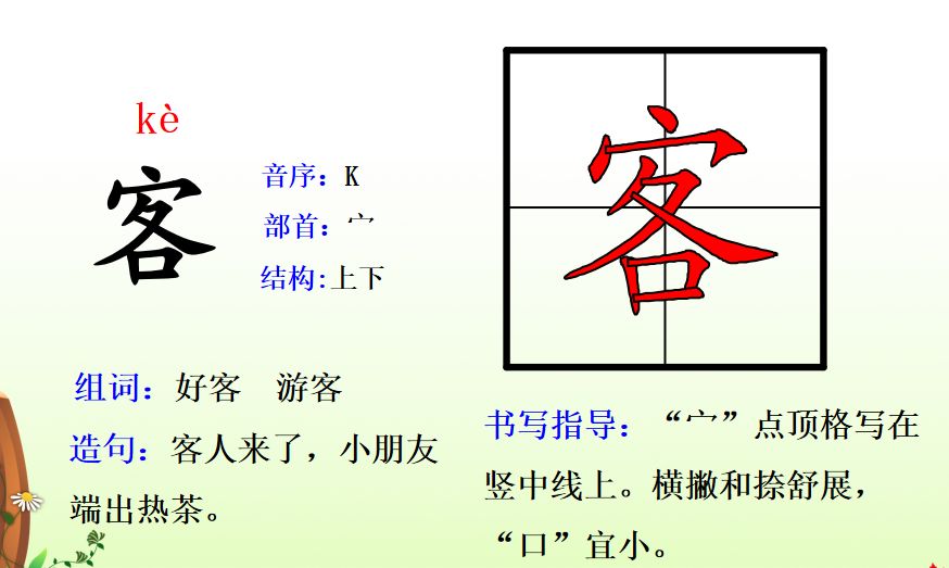客kè(游客、客人、来客)
