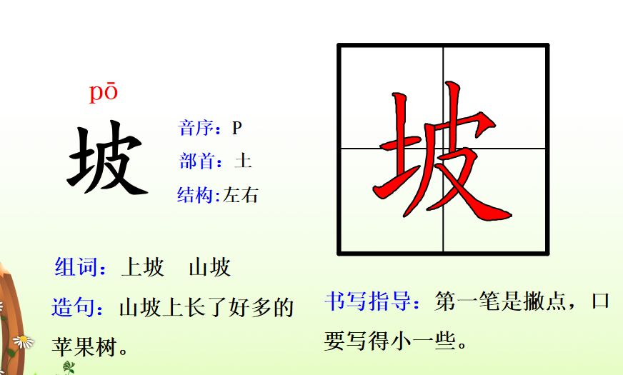坡pō(上坡、山坡、土坡)