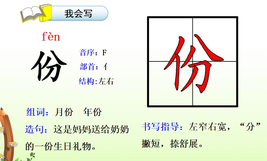 份fèn(年份、一份、省份)