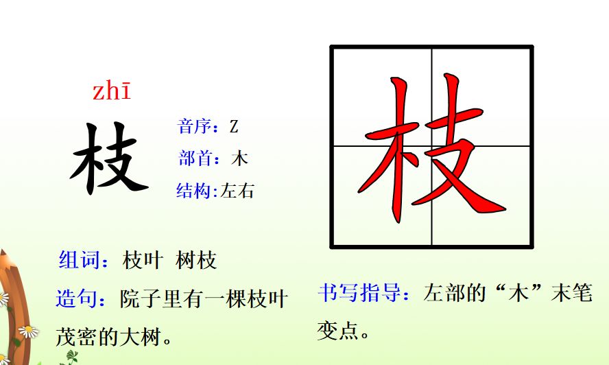 枝zhī(树枝、枝叶、枝条)