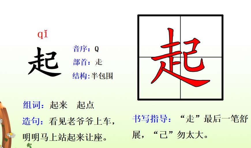 起qǐ(起来、起点、起飞)