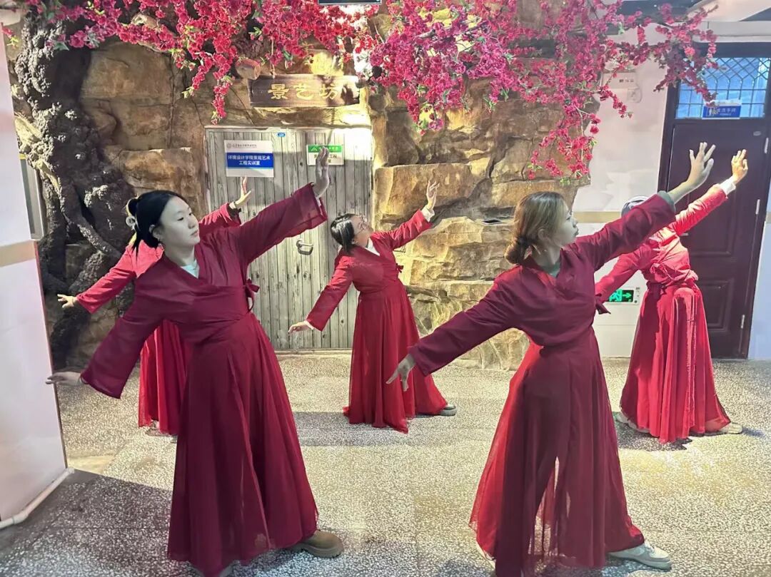 11月11日,舞韵芳华社团在实训楼一楼组织25名社团成员开展《礼仪之邦》舞蹈教学活动。活动主题是以舞促学,引领社团成员掌握中国礼仪文化的精华,学习《礼仪之邦》舞蹈作品动作,提升社团成员的礼仪素养。 ?舞韵芳华社团社长汪书羽在平日里定期会组织社团成员开展舞蹈学习与表演,带领每名社团成员认真学习舞蹈动作,从舞姿、表情及动作等方面提升社团成员的舞蹈基本功,要求做到行走有矩、坐立有相、言谈有礼;社团指导教师王晓丹向社团成员传授了《礼仪之邦》舞蹈作品的寓意以及在日常学习生活中应遵守的礼仪规范内容,带领社团成员完成舞蹈动作的学习,分析舞蹈动作语言,要求达到人人知礼,以舞学礼,用舞蹈动作表达文明,传承礼仪文化。 ?舞韵芳华社团将持续排练舞蹈作品,在学校的各项活动中展示大学生青春向上的精神面貌,以舞动的方式践行“知礼、懂礼、守礼”。?