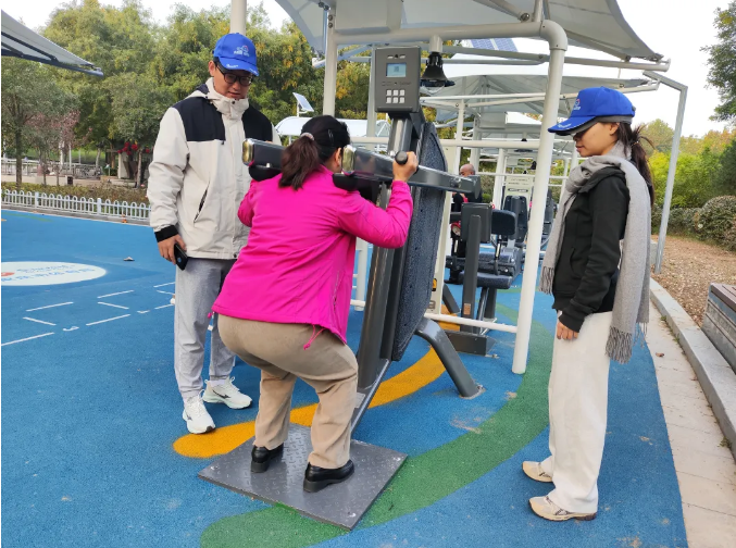 为了更快教会市民使用这些健身器材,石家庄市体育局还指导相关企业组建了“小蓝帽”全民健身志愿服务团队。每个双休日,都会有“小蓝帽”志愿者轮流在各处室外智能健身房为群众答疑解惑,提供健身器材使用的专业指导。