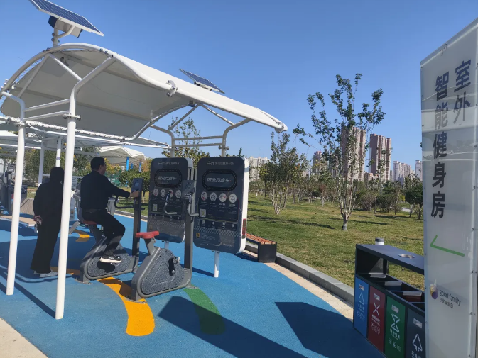 位于石家庄市体育公园内的室外智能健身房包含体测区、力量和有氧训练区、竞赛区三个区域。