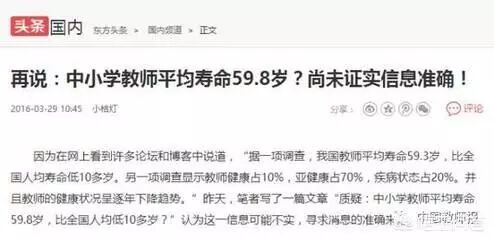 不记得是几年前,在网上看到过一篇帖子(文章),说中国的教师人均寿命59.3,然后引起不小的震动,后来,还有机构出来辟谣。
