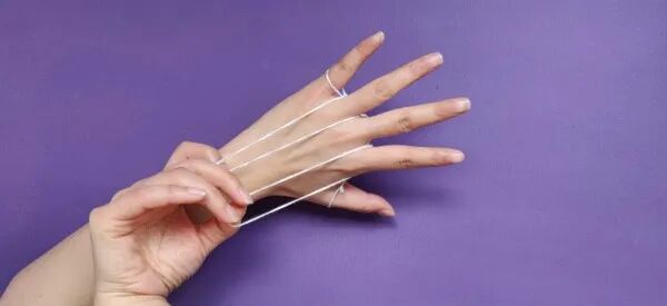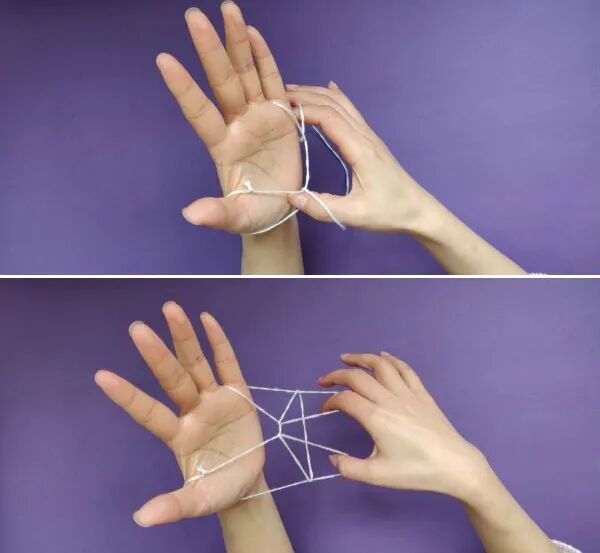 小白果云学园 一根小小的套绳 通过手指来完成 撑、压、挑、翻、勾、放 等精细动作 智慧在指尖 快来试一试吧 小白果 绳子 1 剪取一节 长度适宜的绳子 将两端系牢变成绳套 2 将绳子如图套在 左手大拇指和小指上 3 右手如图将绳子拉出 拉出后如下图 4 再次如图将绳子拉出 拉完如下图 5 右手大拇指和食指 如图勾入 并慢慢拉开 6 将左手的食指、中指、无名指 插入拉开的绳子缝隙中 右手把绳子往手翻转 7 右手食指和拇指拉住 左手掌心的那根绳 轻轻往外拉 看,一个降落伞就变出来啦 剪取绳子的时候 小朋友们可一定要在 成人陪同下使用剪刀哦 玩法多多哟 快来挑战吧 翻绳游戏——五角星 游戏最大的乐趣 就在于翻出新花样 你还有其他的玩法吗 大小朋友们赶快来 展现你们的聪明才智吧 我们期待你的作品哟 往期精选 小白果云学园 | 益智游戏——指尖上的舞蹈 小白果云学园 | 综合活动——小白兔手偶 小白果云学园 | 亲子游戏——木棍不倒翁 小白果云学园 | 生活活动-拉拉链 小白果云学园 | 体育游戏——当绳子遇见罐子 3月 5日 撰稿:刘倩倩/张进 审稿:行政办 选送:成都市第三幼儿园 你“在看”我吗?