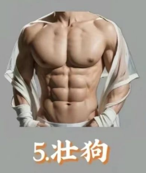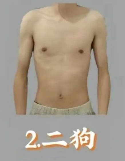 特点是:相对匀称,但略显单薄。整体形象给人一种尚可,但老是让人觉得有点缺少锻炼的感觉。如果你是二狗,别担心,日常的有氧和力量训练都能让你从“二狗”进阶为“壮狗”!多吃一些全谷物和健康脂肪,逐渐强化肌肉,每周给自己定个小目标,总能慢慢吸引更多眼球。