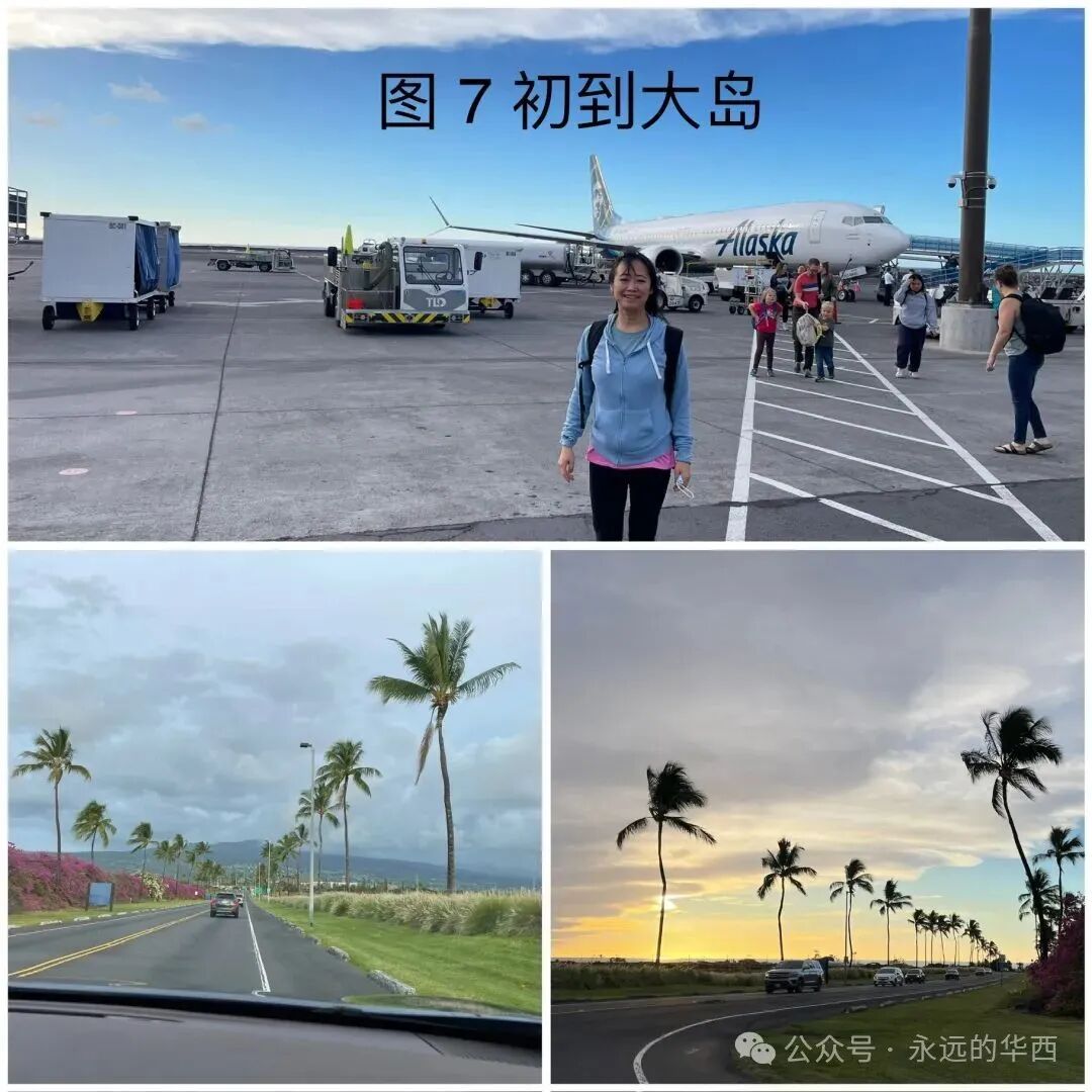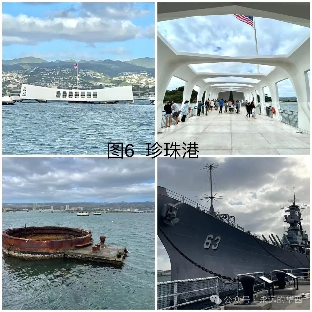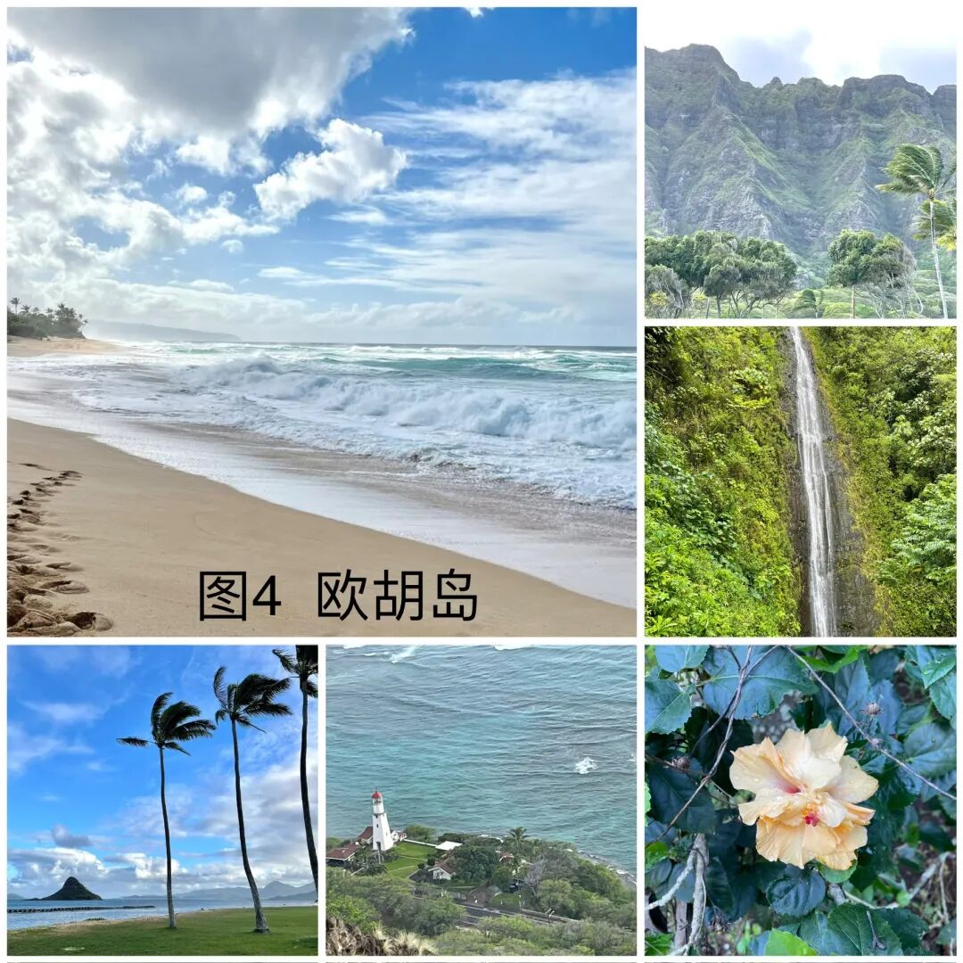 1908 年,美国国会把夏威夷欧胡岛的珍珠港定为美国的海军基地。1941年月7日,日本帝国空军三百多架飞机对珍珠港进行多轮狂轰滥炸,摧毁了八艘美国军舰,180多架飞机,导致2393人丧生,1178人受伤。日本偷袭珍珠港将美国卷入了第二次世界大战。访问珍珠港(图6),看到无数亡魂葬生的战舰残骸,祈祷珍珠港是最后一个为和平付出代价的地方。祈祷美丽的夏威夷和地球上任何一个地方都不再遭受战争的蹂躏。2023年8月,茂易岛有处高压线被风吹倒引发火灾。大火烧毁了茂易岛最著名的旅游胜地拉海纳小镇,一百多位居民葬身火海。站在鬼城般的拉海纳小镇和其邻近豪华的度假村之间,问大自然是否对过度开发茂易岛有所异义?为了节省开支和避免拥挤,我和老伴选择了12月初去夏威夷。这时的机票和旅馆费比圣诞节期间低一半。我们从大岛登上夏威夷,然后坐小飞机从大岛到茂易岛,再从茂易岛乘小飞机到欧胡岛,最后从欧胡岛返家。登上大岛时,我们被温暖的晚霞和公路两边盛开的鲜花和婀娜多姿的椰树所感动(图7)。波士顿此时正万木凋零,冰天雪地。首先来到一家餐馆吃晚饭。如波士顿的美式餐馆一样,这里昏暗,拥挤,酒吧电视上放着激烈的球赛。游客们耐心地排着长队。说是要等30分钟。我们挪到邻近一个泰国餐馆。这是个楼上的露天餐馆,可看街景,但不知为何门可落雀。胖胖的女老板和光着膀子的伙计在吹着风扇看电视。他们三五分钟就端出了上百美元的三个菜,蔬菜没炒熟,鸡肉和牛肉太老。而且太咸太辣。我们还被这里饥肠辘辘的蚊子饱餐了一顿。第二天晩上我们享受了夏威夷独有的传统歌舞宴会叫做Luan。宴会在海边星空下,椰树旁举行。各式自助正餐,凉菜,甜点,还有酒水让人眼花缭乱。乐队弹奏着轻柔的的岛国音乐,穿着艳丽服饰的姑娘们跳着曼妙的草裙舞,扮成部落勇士的壮汉舞动着火棍。让我们尽享岛国风情,希望这个晚宴永不结束……在大岛的最后一个早上,我们踏着朝阳在海边散步。可见垂钓的老者和躺在海堤上睡懒觉的流浪汉。想到这里的流浪汉不用受寒冬之苦,为他们感到庆幸。三月前遭受火灾的茂易岛西部是是很商业化的地方。这里有昂贵的度假村和成片的居民住房。我们的旅馆在较便宜的茂易岛中部,但还是这次旅行中最贵的。不提供早餐,还要付度假费(resort fee)。茂易??人赚钱有方。哈纳之路(Road to Hana)是60多英里长的风景驾车公路。沿着茂易岛东部北侧海岸线所建,从中部通向哈纳镇。一路上没有饭店和公厕。有小贩在路边搭篷做烧烤,十八美元一盘白米饭加个烤鸡腿和芥蓝,解决了吃饭问题。正在担心方便的问题,路边豁然出现一个叫“伊甸园“的植物园(图8)。三十美元看尽人间奇花异草,享受公厕和观看瀑布的最佳景点。还可以与鸡鸭同乐,与孔雀共舞。要不是穷追不舍的蚊子提醒,还以为自己真的到了伊甸园……到了茂易岛才知道公园需要预约(网站为recreation .gov)。原因是游客多,停车位有限。由于这个原因,我们跑了两趟才看到伊奥山谷,且错过了Wai’anapanapa 州立公园和Haleakala国家公园的日出。但有机会完成了茂易??东部环岛游。与茂易岛西部相比,东部显荒凉(如下视频 )。部分路为石子路,沿着悬崖峭壁而开,让人心惊胆颤。老伴眼神不好,得专心开车,不敢往两边看。让他停车照像的时候,一定要有一个让他“哇噻“的景点。他认为始终没有等到,结论是“茂易岛没什么好看的!“。