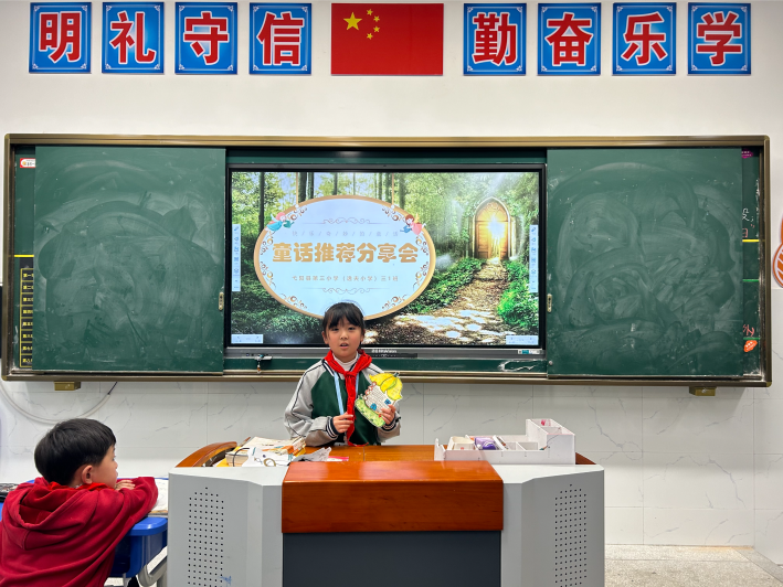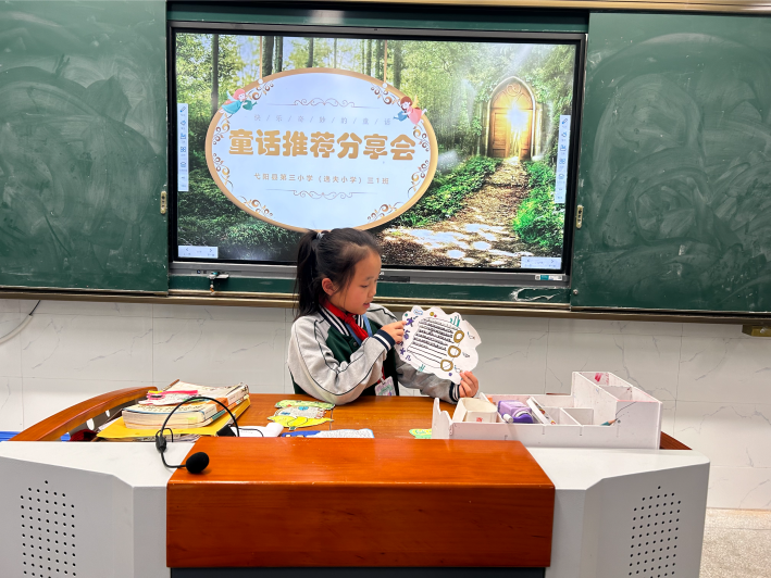 为激发学生爱读书,读好书的热情,体会读书乐趣,分享读书成果,三1班的孩子们在班上开展了“童话分享推荐会”。