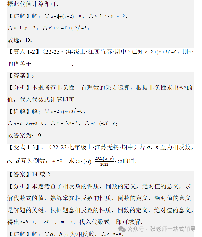 第一章 《有理数》复习:知识点和常考题