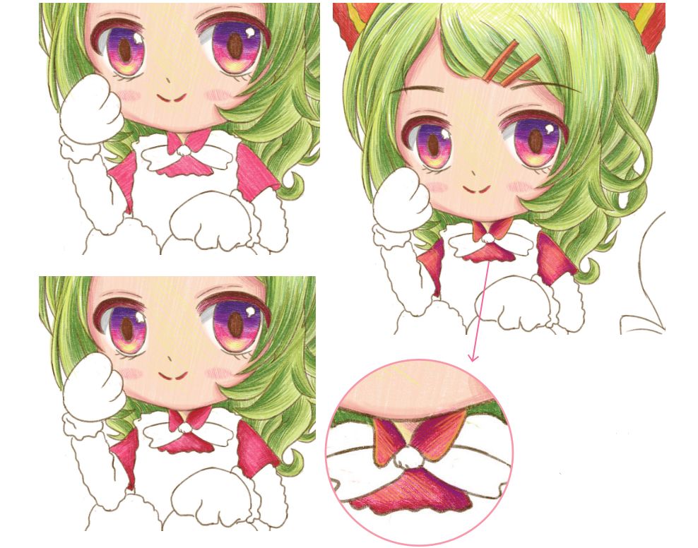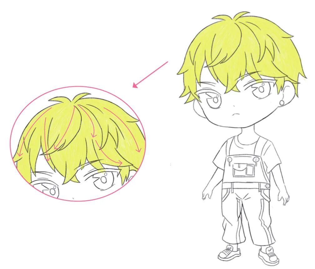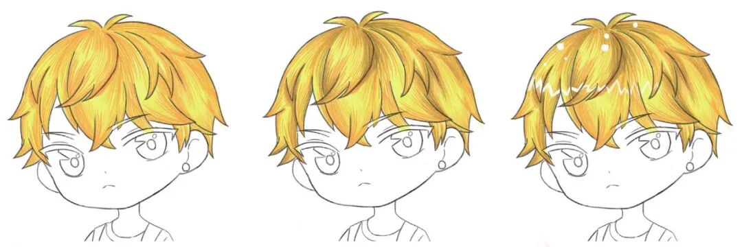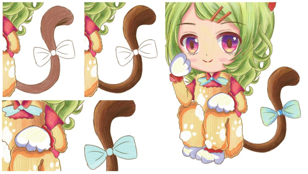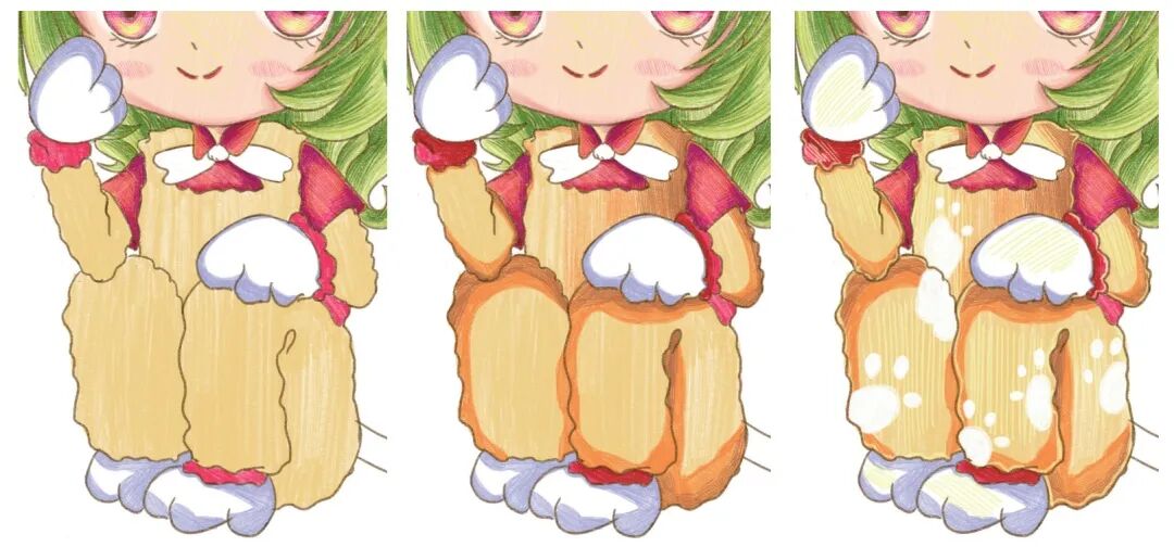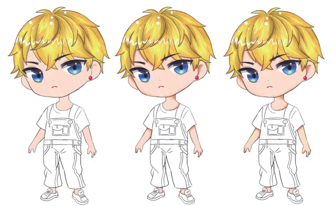想要画出可可爱爱的动漫形象,除了画好它的身形比例、五官表情之外,涂上漂亮的颜色也是非常重要滴。 菌菌之前给大家出了许多用马克笔给动漫人物上色的教程,但是木有马克笔肿么办!? 其实彩铅也能画出敲好看的动漫人物! 今天的彩铅上色教程菌菌先表白了!(????) 猫系女孩 结构稿、线稿绘制 1.简单地绘制出人物的动态和结构结构,确定四肢的位置以及尾巴的大小。 2.然后完善人物形象的线稿, 绘制出头部和四肢的细节,注意人物表情和服饰、装饰物的细节。 上色步骤 在给头发上色时,要按照头部轮廓均匀地把颜色铺满。要顺着头发的生长方向绘制,将高光处留白。 3.画出女孩头发的底色。画出头发的暗面,并逐步加深,注意颜色的自然过渡。再用浅色画出头发的亮面。 4.画出耳朵和发卡的底色,在平铺颜色的基础上添加暗面颜色,并在耳朵尖的部分添加高光点。 5.画出眼眶和瞳孔的颜色。接着画出眼球的底色,为了使眼球的颜色丰富,使用了两种底色;注意留出高光的位置。然后用浅色画出眼底高光颜色,并加深眼眶,完成眼睛的绘画。 6.画出人物面部皮肤的底色,然后画出皮肤暗面的颜色,最后画出腮红和面部皮肤的亮面颜色。 给暗红色的领口加上一些亮黄色,能够增强衣服的 7.画出领口和袖子的底色,再用更深的颜色画出领口和袖子暗面的颜色,最后添加一些亮面颜色,使衣服看起来更有质感。 8.画出裤子、手腕和四肢的底色。然后加深手腕和裤子暗面颜色,最后在裤子上添加一些小动物的爪印,突出活泼可爱的人物形象。 9.画出尾巴的底色,并加深尾巴暗面和亮面的颜色,体现出尾巴的立体感。画出领结和蝴蝶结的底色,在此基础上添加暗面和亮面的颜色,美美的装饰物就画好了。 毛茸茸的动物服,加上小小的身体,让人物形象显得更加乖巧可爱。 盐系男孩 结构稿、线稿绘制 1.绘制出人物的身体结构,用十字线标出面部朝向,绘制时注意把握人物姿态和重心。 2.接着在结构稿的基础上绘制出人物的线稿,注意线条的流畅和粗细变化。 上色步骤 3.画出少年头发的底色,颜色涂画要均匀,笔触要顺着头发生长的方向。 4.首先画出头发的阴影颜色,增强头发的层次感。接着调整头发的整体细节画出头发的晴面颜色和亮面颜色,再用白色铅笔画出高光的位置。 5.画出眼眶和瞳孔的颜色,然后用深色加深眼球的暗面,画出眼睛阴影的颜色。由深到浅添加眼球的颜色,颜色过渡要自然,高光处留白即可。 6.添加淡淡的眼球高光色,并在眼眶处添加灰面阴影色,加强眼睛的立体效果。最后添加嘴和耳钉的颜色。 7.均匀地画出少年的皮肤底色。然后画出皮肤的暗面颜色,脖子上用深色进行叠加,接着画出少年皮肤的亮面颜色。 在绘制人物皮肤暗面时应用到了叠色,在添加叠色时要注意两种颜色的自然过渡。 8.最后添加脸部的腮红,完成皮肤的绘制。 9.画出 T 恤的底色,接着用深色画出褶皱和暗面的颜色。 10.添加裤子的底色,接着用深色画出裤子的暗面颜色。添加口袋和扣子的颜色使裤子变得更加完整,继续添加口袋和扣子的暗面颜色。最后添加裤子条纹的颜色 11.均匀地画出鞋子的底色。添加鞋底的颜色和鞋子的亮面颜色,增强鞋子的体积感。 以上的教程来自《用彩铅画漫画 Q版动漫人物教程》,如果你还想学习更多彩铅画Q版动漫人物绘制教程。可以点击下方商品卡查看详细信息↓↓↓ 从人物的结构线稿绘制教起,随书附赠网格线稿,超多Q版彩铅绘画练习,带你一起进入色铅笔的世界! 精 / 选 / 阅 / 读 (点击下方图片即可阅读) ↙↙↙??点击“阅读原文”可购买以上图书 喜欢我们的书,点个“在看”吧??↘![]()