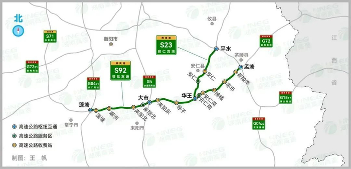 2024年12月31日,S92茶陵至常宁(含安仁支线)高速公路建成通车,全线合计153.655公里,设置收费站10处、服务区3处,设计时速120公里。茶常高速东与G72泉南高速、G0422武深高速相接,西与G0421许广高速、S71华常高速相连,中有G4京港澳高速穿境而过,交通分流效应得以充分发挥。