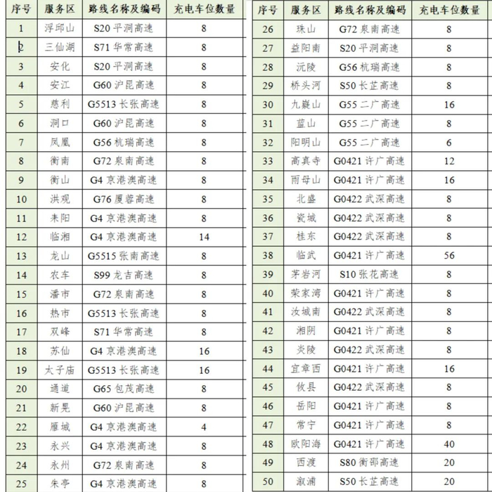 温馨提示:随着新能源车逐渐普及,春运期间,服务区充电桩使用利用率高,可选择就近收费站驶离,打开车载APP搜索附近充电桩位置,APP可根据用户的位置智能地推荐附近的充电站,通过精确的导航迅速到达充电地点,也可选择收费站驻地院内充电桩。具体分布如下:
