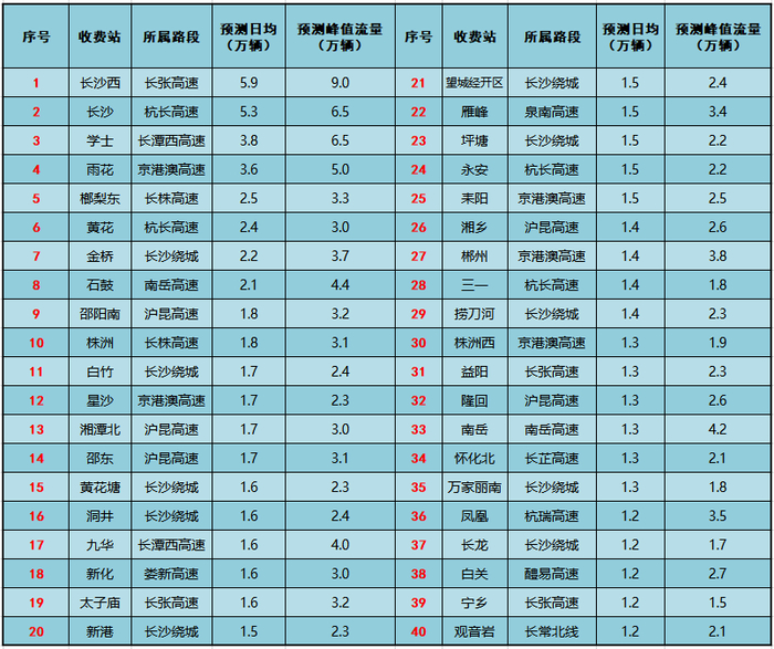 预测2025年春运期间长沙西收费站出入口日均流量达5.9万辆,峰值9万辆,呈潮汐分布特征。