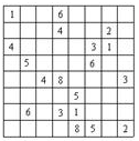 解此类数独题的关键在于观察那些位置较特殊的方格(对角线上的或者所在行、列空格比较少的),选作突破口.本题可以选择两条对角线上的方格为突破口,因为它们同时涉及三条线,所受的限制最严,所能填的数的空间也就最小. 副对角线上面已经填了2,3,8,6四个数,剩下1,4,5和7,这是突破口.观察这四个格,发现左下角的格所在的行已经有5,所在的列已经有1和 4,所以只能填7.然后,第六行第三列的格所在的行已经有5,所在的列已经有4,所以只能填1.第四行第五列的格所在的行和列都已经有5,所以只能填4,剩下右上角填5. 再看主对角线,已经填了1和2,依次观察剩余的6个方格,发现第四行第四列的方格只能填7,因为第四行和第四列已经有了5,4,6,8,3.再看第五行第五列,已经有了4,8,3,5,所以只能填6. 此时似乎无法继续填主对角线的格子,但是,可观察空格较少的行列,例如第四列已经填了5个数,只剩下1,2,5,则很明显第六格填2,第八格填1,第三格填5.此时可以填主对角线的格子了,第三行第三列填8,第二行第二列填3,第六行第六列填4,第七行第七列填5. 继续依次分析空格较少的行和列(例如依次第五列、第三行、第八行、第二列……),可得出结果如下图.