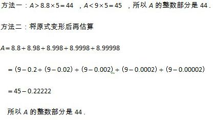 (第六届小数报决赛)A 8.8 8.98 8.998 8.9998 8.99998,A的整数部分是_________.