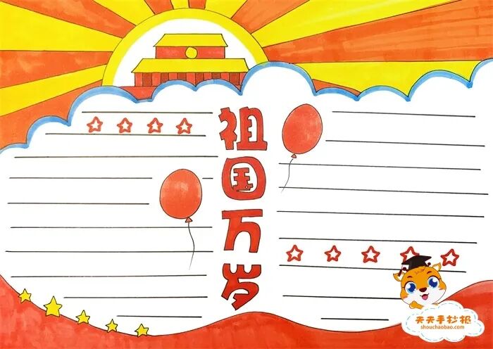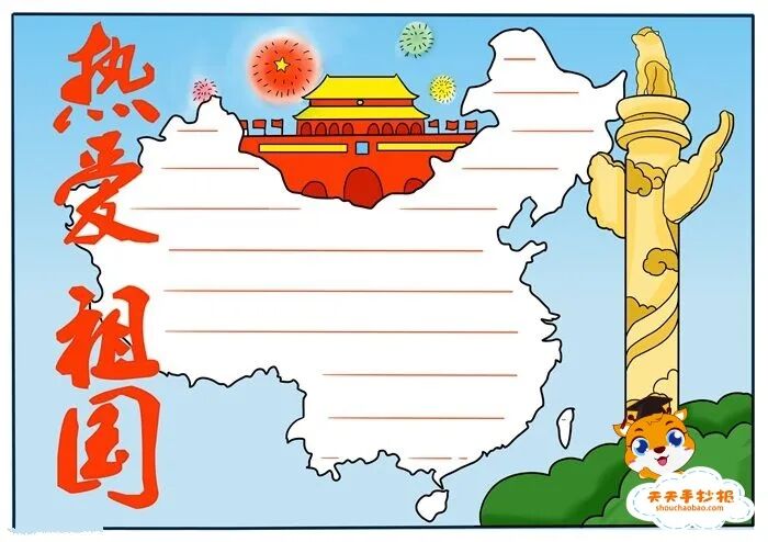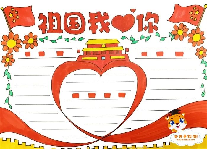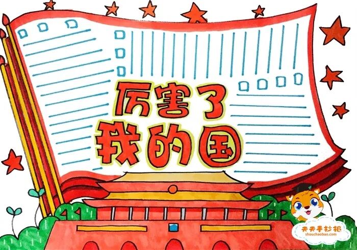 我爱祖国手抄报如不符合原先的划分,就要将版面块面安排作必要的调整;如不能安排下文章,就利用移引、转版的形式等,并用字号、颜色、花边与邻近的文章块面相区别。