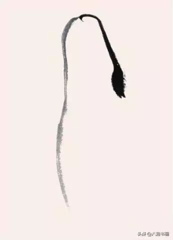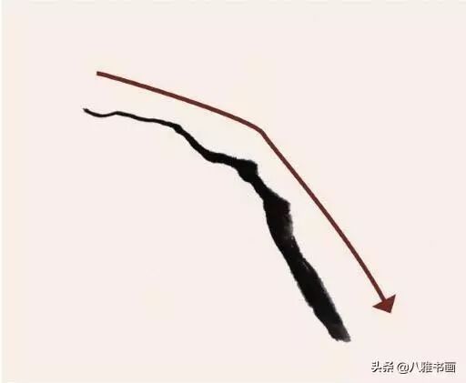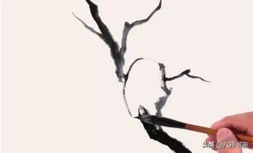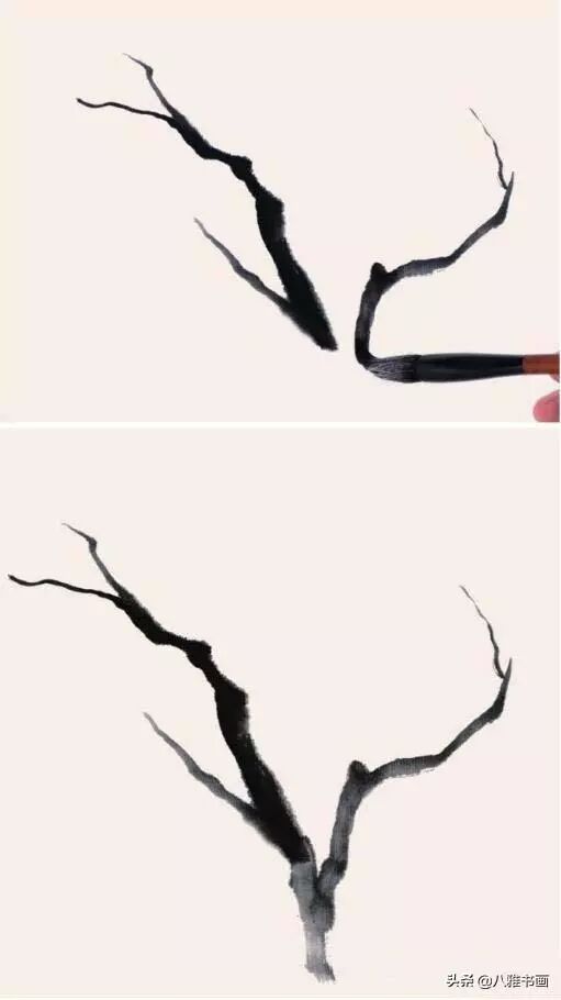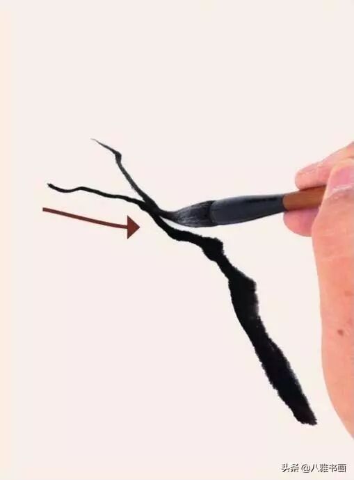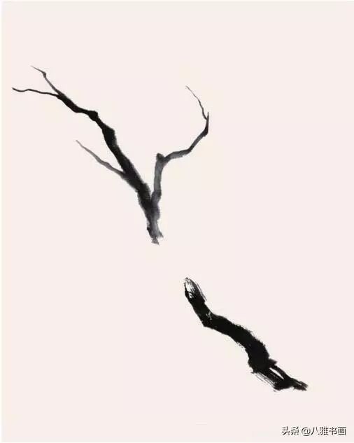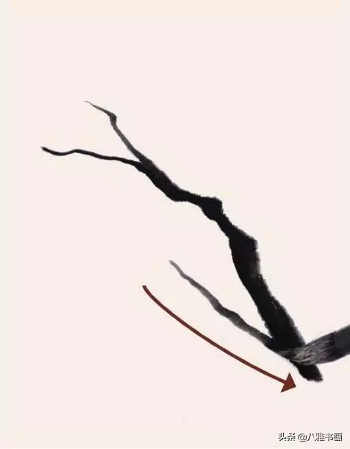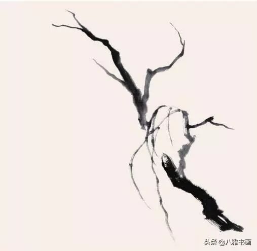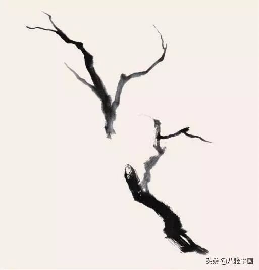 4、确定态势,画出下部主干,继续添画右侧树干,用笔过程中留出的飞白要保留。注意运笔时的速度与提按、转折。