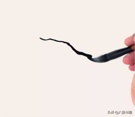 选小号狼毫笔,蘸取重墨,侧锋转中锋运笔,收笔留锋,画出柳枝,随后换取淡墨勾画柳条,线条要弯曲、有弧度,自然合理。