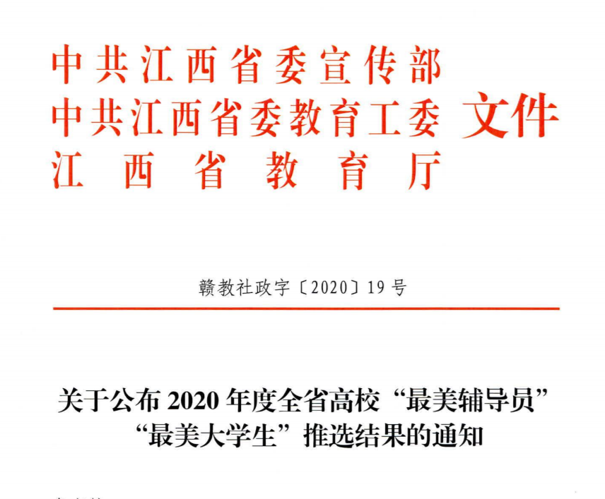 原标题:喜报 | 我校师生荣获2020年江西省高校“最美辅导员”和“最美大学生”荣誉称号