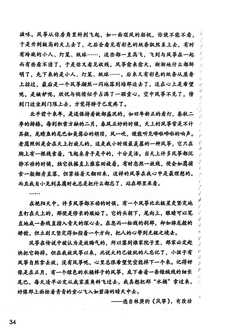 4.风筝被绞断了线,随风而去,越飞越高。开始,他们看到的风筝只有鸡蛋大小;后来,风筝迅速飞去,人们只能看到一个小黑点;最后,风筝在天空中消失。这个句子写出了风筝在天空中迅速飞去直到消失的过程,抓住了风筝的姿态和形状,写得十分生动具体,表达了贾宝玉等放风筝时异常欢快的心情。
