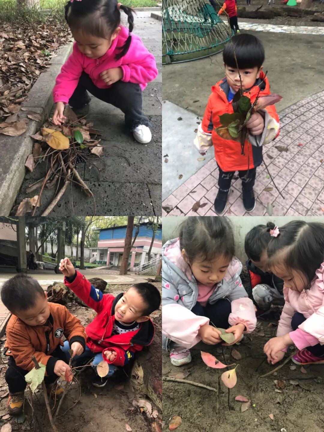 “去寻一寻你喜欢的落叶,去找一找秋天的颜色……”大自然对孩子们总有无穷无尽的吸引力,孩子们迫不及待的进入樟树林里,聚精会神地开始找寻各种各样的落叶。对于小班的孩子来说,亲身去体验,亲自去寻找比知识传授更重要,孩子们自己捡的每一片树叶都是他们心中的珍宝。