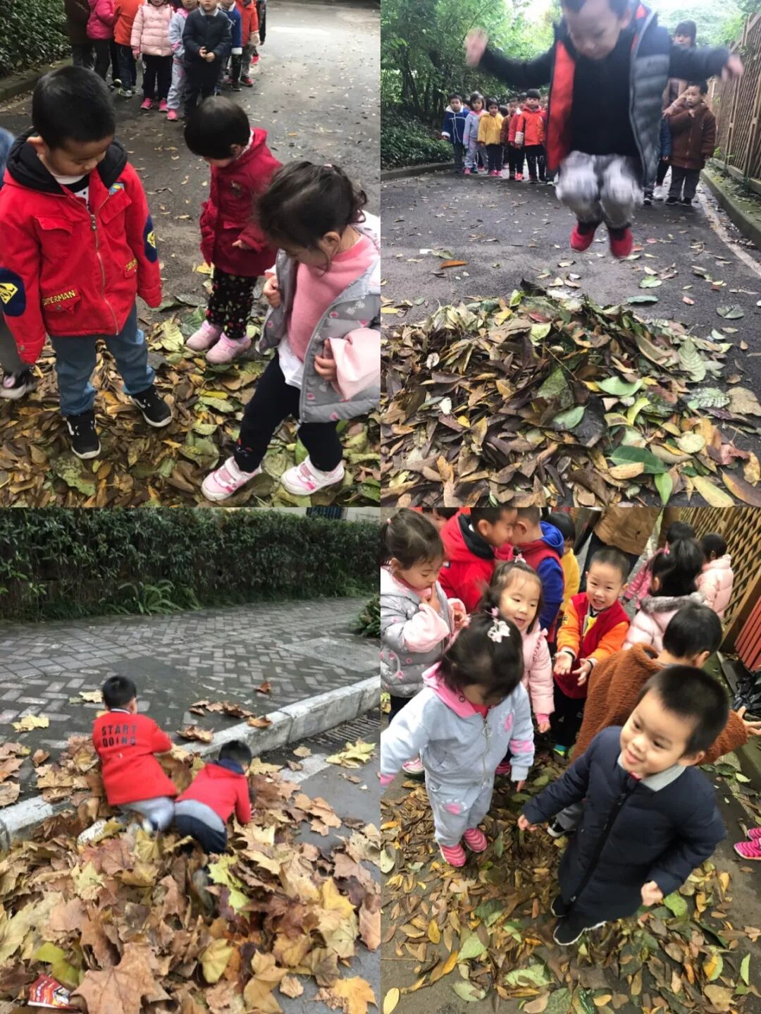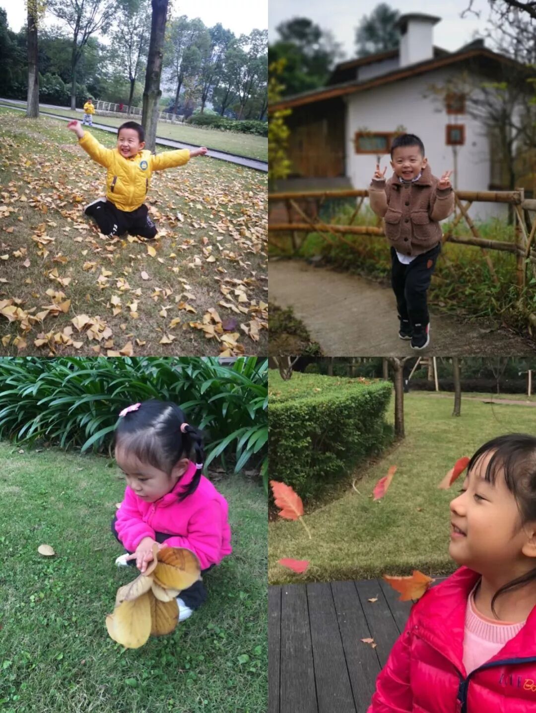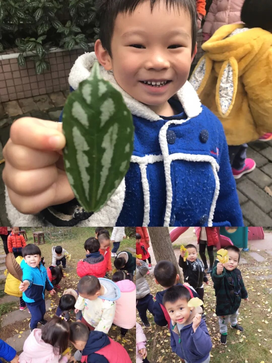 银杏香樟腊梅,幼儿园里的秋天这么美丽,枯枝落叶秋果,大自然的赠与这么丰厚。孩子们在收集落叶的过程中,去观察去发现;在和落叶做游戏的过程中,去奔跑去跳跃;在和一草一叶的亲密接触中,去敬畏生命去热爱自然。在一片落叶里找到秋天,也在一片落叶里遇见教育。