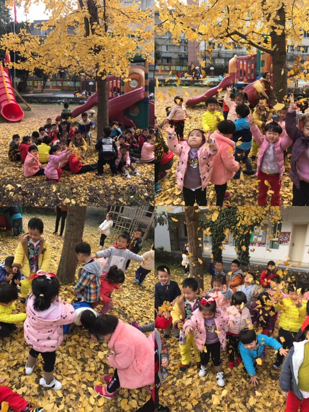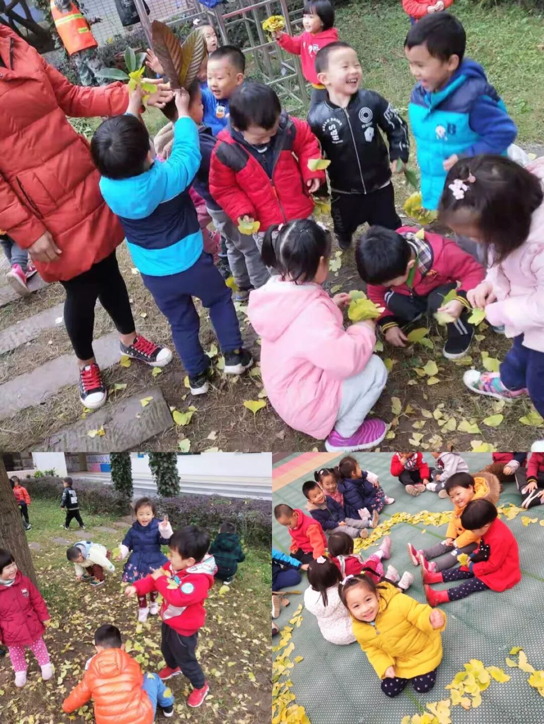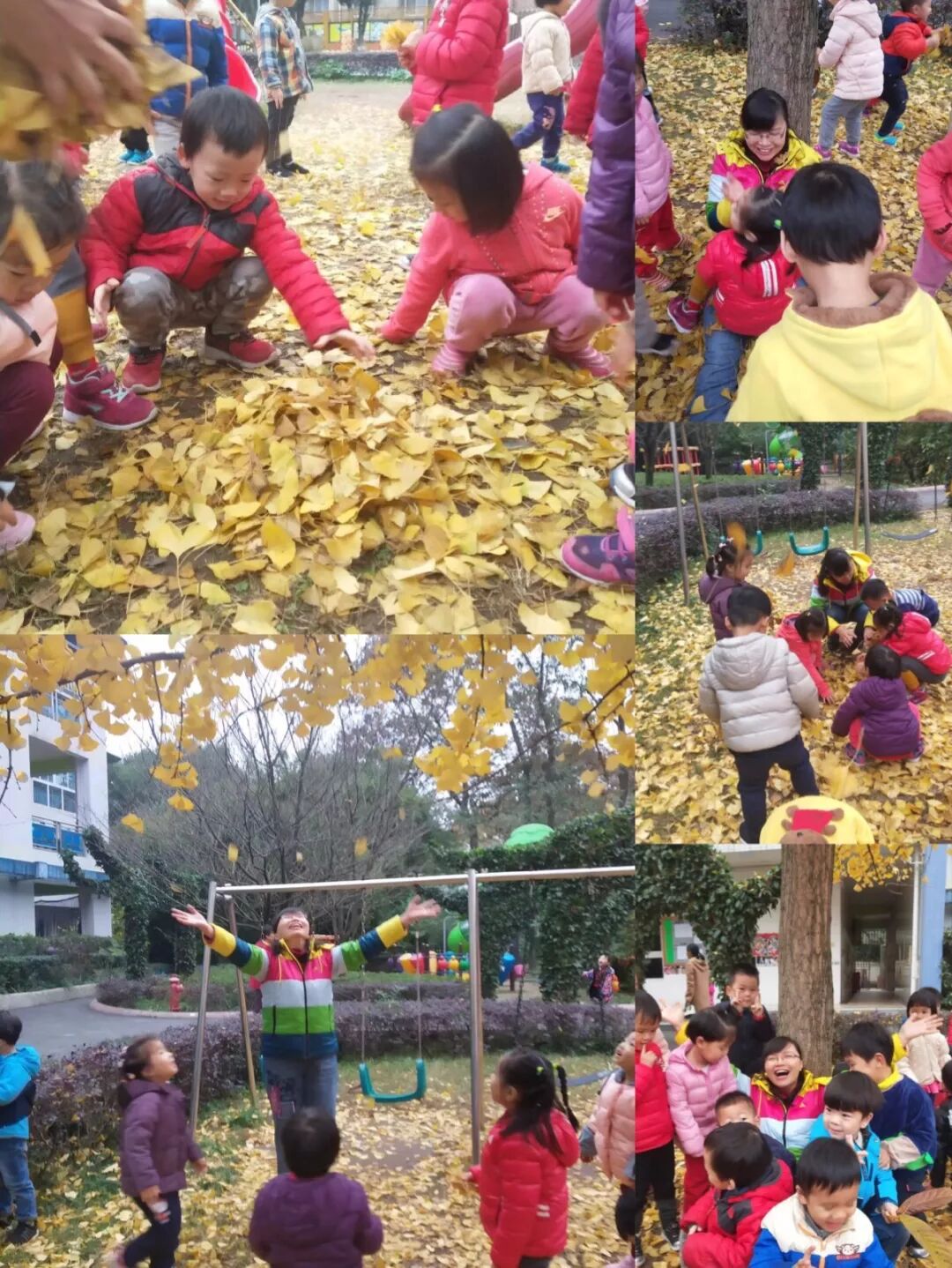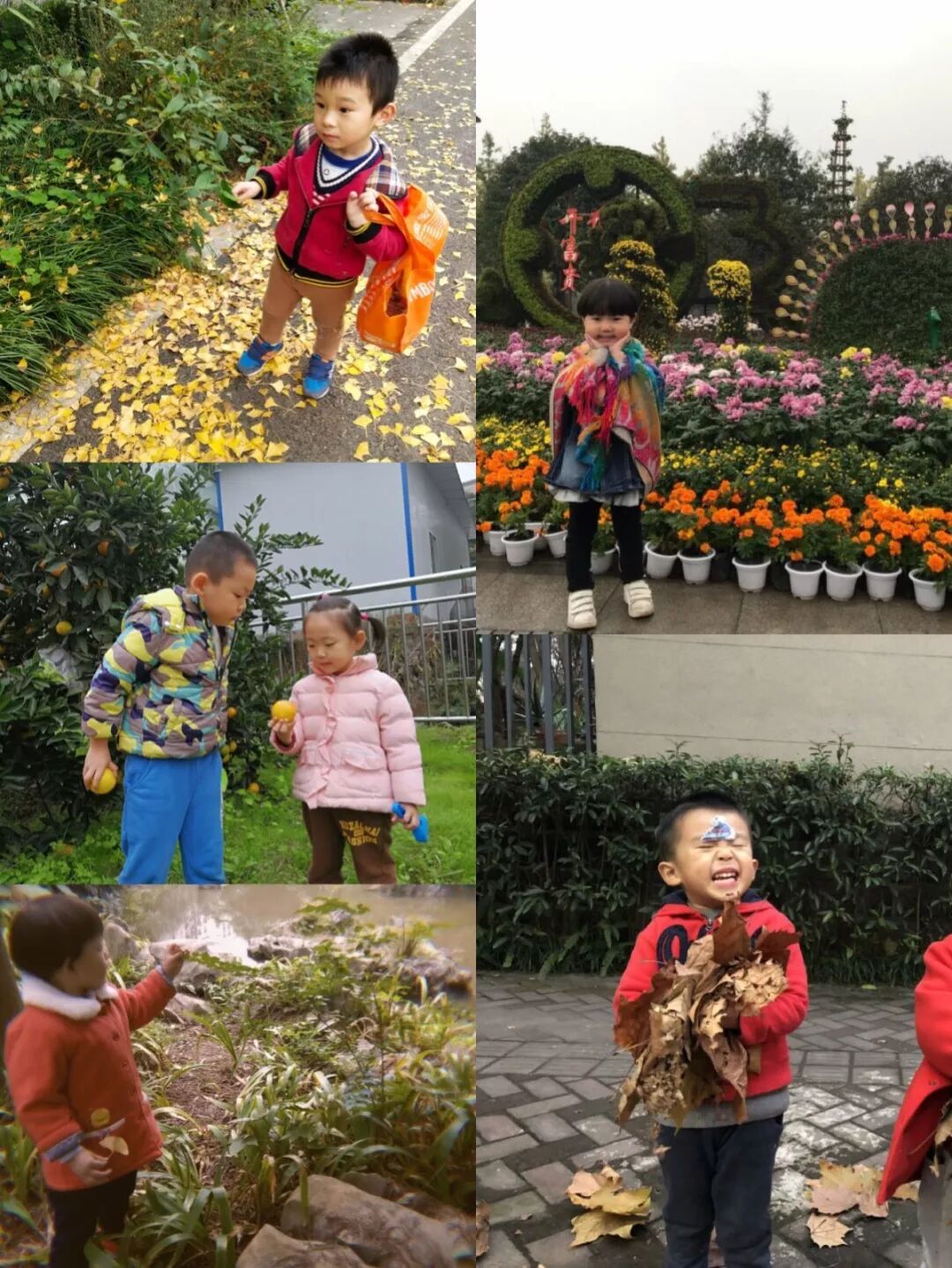 银杏香樟腊梅,幼儿园里的秋天这么美丽,枯枝落叶秋果,大自然的赠与这么丰厚。孩子们在收集落叶的过程中,去观察去发现;在和落叶做游戏的过程中,去奔跑去跳跃;在和一草一叶的亲密接触中,去敬畏生命去热爱自然。在一片落叶里找到秋天,也在一片落叶里遇见教育。