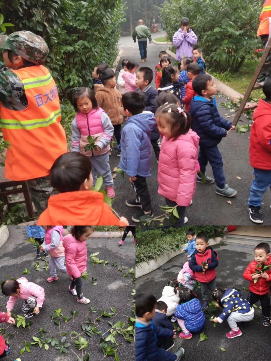 黄黄的银杏叶是我们的宝贝,工人叔叔修剪的桂花叶也是我们的宝贝,快快收集起来,小艺术家们要行动啦!
