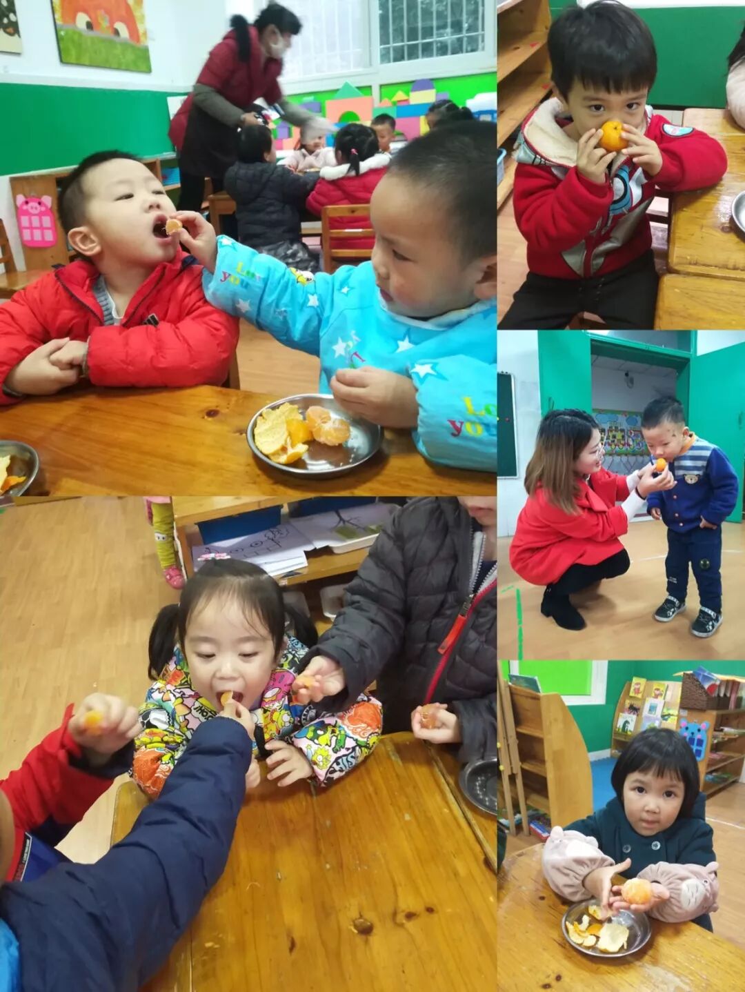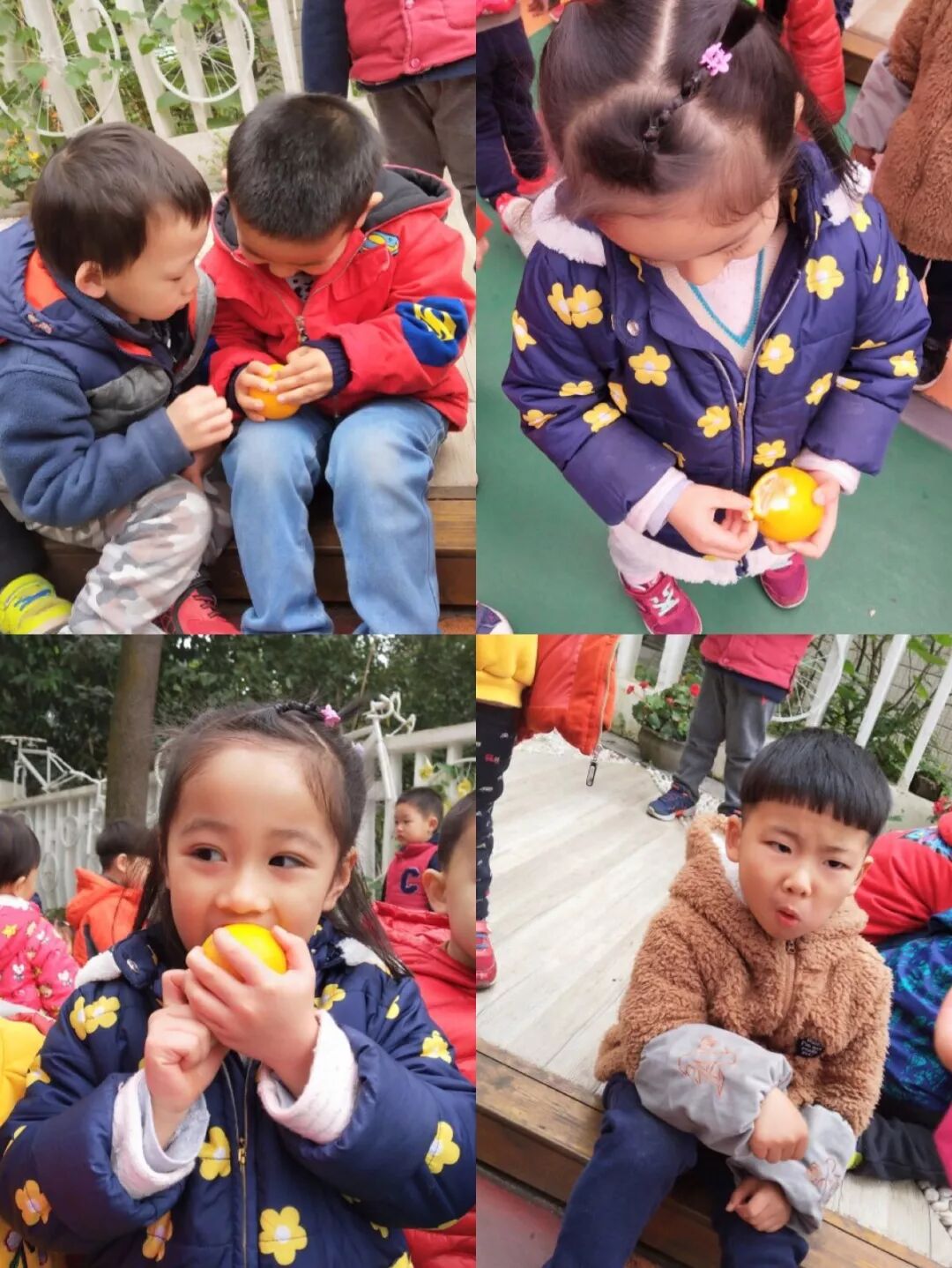 在和大自然“亲密接触”的过程中,孩子们不仅能跟大自然和谐相处,也能和同伴友好相处,孩子们相互交流见闻和感受,互相分享桔子,让孩子们的沟通能力,交往能力得到了很大的提高。分工合作,小朋友们也来做一棵属于我们自己的红果果树吧!