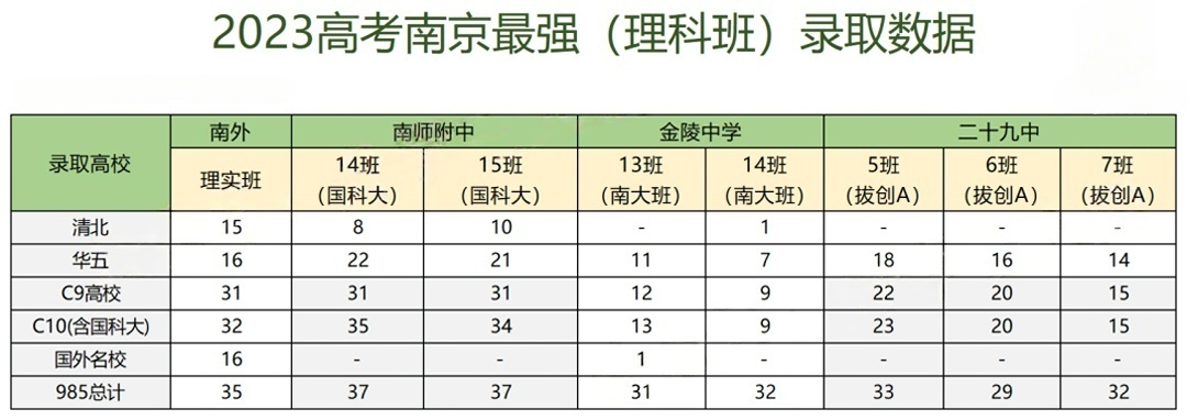 丘班是2022年开始招生的,所以2023年高考,还不存在南外丘班。我们可以拿南外当时最强的理实班对比,40人的理实班,均分660,清北15人,华五16人,985高校总计35人。还有耶鲁、宾大、卡梅隆、剑桥等一众QS前30的世界名校。