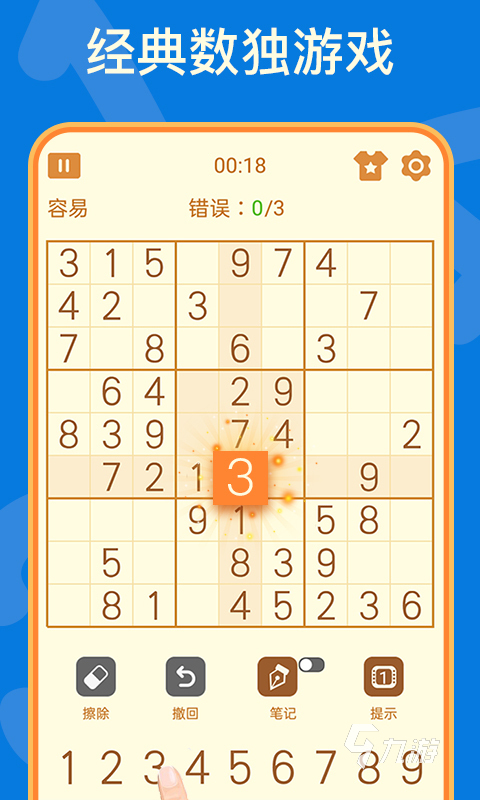 能够让大家慢慢的情绪放松下来,去思考一下数独是怎么玩的。游戏的整体画面感是非常简 简单数独洁的,而且大家可以点击撤回的按键,因为当你输入错误的时候就可以重新去输入数字了。这个游戏非常的简单,大家随时随地都能够打开游戏玩上一局。