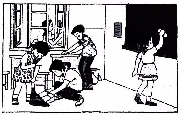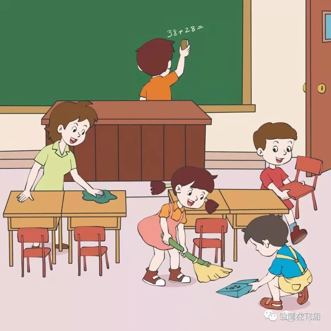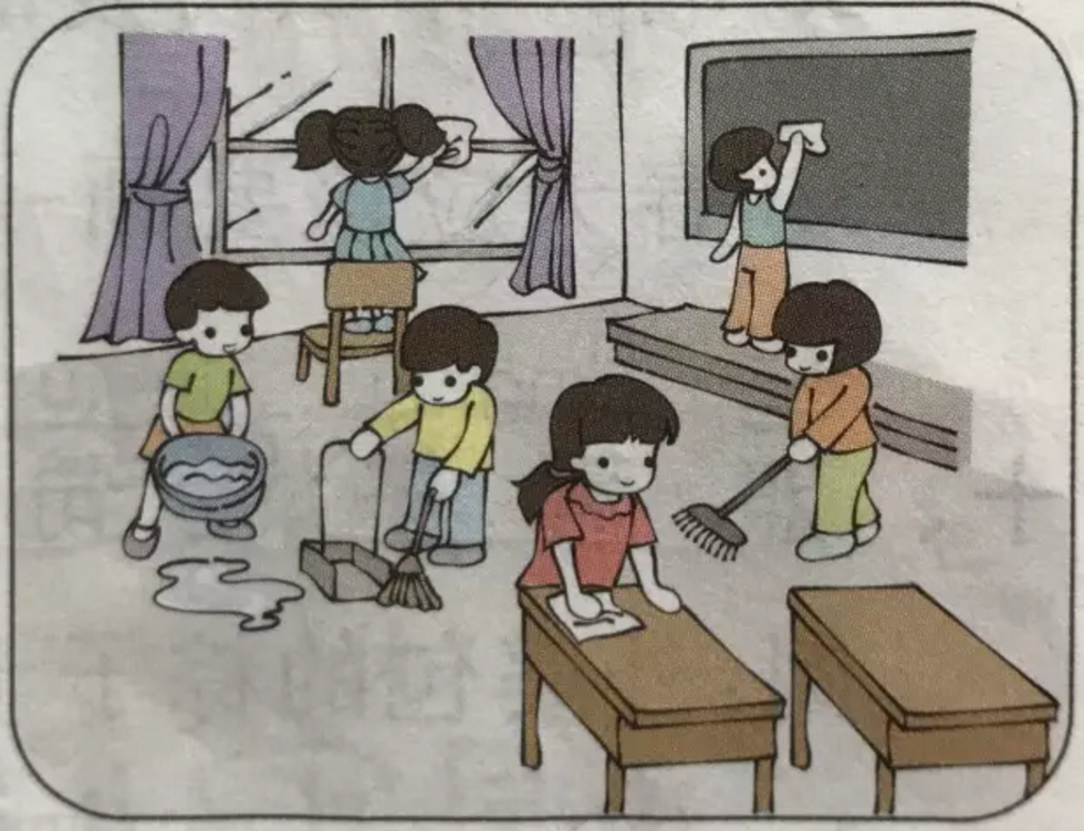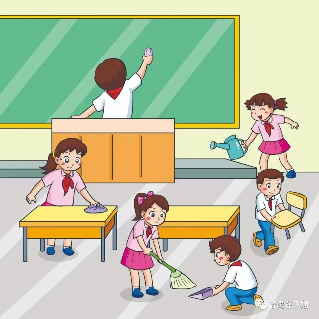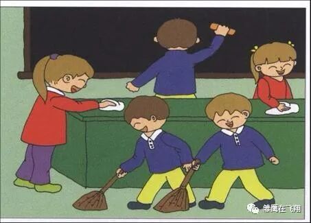看图写话《打扫卫生》 写话引导: 图上画的是什么时候,什么地点,有哪些人? 图上的每个同学干得怎么样,动作如何,心情 又是怎样的呢?他们可能会想些什么,做完之 后,结果怎样呢? 他们干得可认真了!有的……有 的……还有的…… 有的在 擦黑板, 有的在 扫地, 有的在 擦桌子。 1、只见×××————,黑板被擦得—— ———。 形容干净的词语:干干净净 一尘不染 亮洁如新 焕然一新 2、你看,×××小朋友在扫地,他—— ———,累得—————。 形容劳累的词语:大汗淋漓 满头大汗 汗流浃背 气喘吁吁 3、×××小朋友在————地擦桌子,她—— ————。形容做事认真的词语:认认真真 仔仔细细 全神贯注 专心致志 一心一 意 例文 今天是个阳光灿烂的好天气,我们学校进行 了一次大扫除。大扫除开始了,小朋友干得热火朝天,有的小朋友在拖地,有的朋友在擦黑板, 还有的小朋友在擦桌子。只见小刚手拿抹布使劲地擦着黑板,黑板被擦得焕然一新了。你看,小明弯着腰,拿着扫把用力地扫着地,他累得满头大汗、气喘吁吁,但仍不肯休息。还有小英拿着抹布在擦桌子,她干得可真仔细呀!在小朋友的共同努力下,教室被打扫得干干净净、一尘不染。 写话要求: 1、为图画起一个题目。2、开头空两格。3、标点符号单独占一格。4、写字工整,句子通顺。 例文 星期五,是学校的大扫除日。今天又是同学们大显身手的时候了。下课后,老师说:“谁愿意做今天的大扫除呀?”同学们争先恐后地举手说:“老师选我选我!”场面非常踊跃。老师笑着说:“小明、小刚、小红和小丽,你们四个来完成今天的大扫除任务。” 同学们都放学回家了,他们开始干了起来。小明洒水、小刚擦桌子、小红擦玻璃、小丽扫地。他们里面最卖力气的要数小丽了。小丽弯着腰流着汗,她的扫帚像清洁车一样清扫着垃圾,每一个角落都不放过,灰尘被一一地清扫出来,教室的地面就像镜子一样能映出人影来。小刚也不落后,他流的汗像断了线的珠子似地,手里拿着抹布使劲地擦着桌子。平时他特别细心、很爱干净,所以他擦的桌子、椅子上面一点灰尘都没有。 大扫除任务完成了。他们虽然很累,满头大汗,但是他们很开心。因为他们为班集体做了一份贡献。 例文 今天阳光明媚,天空万里无云。学校放学了,小兰、小红、小明在教室打扫。小兰先把毛巾放在水桶洗干净后,拿过来放在窗户来来回回地擦,擦得干干净净的,就像一面镜子一样。小明拿着大扫把,低着头,弯着腰,弓着背,挥动强有力的胳膊,好像冲入敌人的阵地的小战士在清理战场一般。小红拿起黑板擦垫起脚尖,举起右手昂着头仔细地擦,一点灰尘都不放过,全部一网打尽。老师夸赞小兰、小明、小红,教室擦得光洁明亮,就像换了一个新教室一样干净。小兰、小红、小明就像吃了蜂蜜一样甜滋滋的,然后就开开心心地回家了。 一年级例文 下课铃响了,放学了。 今天轮到小红、小丽、小文、小明、小花打扫教室。教室太大了,一个人打扫不了,但是五个人就可以了。有的扫地,有的收垃圾,有的擦窗子,有的擦桌子,有的擦黑板。 五个人干活真快,教室很快变得干干净净了。 一年级例文 放学了,一群可爱的小朋友们在明亮的教室里认认真真地打扫卫生。 他们有的擦玻璃,有的擦桌子,有的扫地,还有的洒水。擦玻璃的小朋友把玻璃擦得亮晶晶的,就像一面大镜子。擦桌子的小朋友把桌子擦得一尘不染。扫地的小朋友把地扫得一干二净。 你快看,他们干得多起劲儿呀! 一年级例文 “铃、铃、铃”下课铃响了。一年二班的同学们都背上书包回家了。 五个值日生留在教室里打扫卫生。他们商量了一下,每个人都有了自己的任务。小红和小绿扫地,小红把垃圾扫到一起,小绿把垃圾收起来。小蓝打来水擦桌子。小白擦黑板,小花擦玻璃。 他们把教室打扫得干干净净后,高高兴兴地回家了。 二年级例文 今天是星期三,第三排的同学打扫卫生。小松负责扫地。他低着头,弯着腰,弓着背,伸着右手,像将军在清理战场一般“刷刷”地扫了起来,不一会垃圾就堆成了一座小山。小波负责擦黑板,他举起右手,昂着头踮起脚尖三两下就把黑板擦干净了。小依负责擦桌子,她从通里拿起来抹布走到了水龙头,把水拧开,水像小瀑布一样流了下来。小依来到了教室,展开了抹布,叠了起来,铺平,擦了起来,不一会儿桌子上就溢出了小依的笑脸。他们把教室打扫的干干净净,教室焕然一新。 二年级例文 星期五下午,轮到我们小组打扫教室。 大扫除开始了。王强拿着大扫帚,挥动有力的胳膊,好像冲入敌人阵地的小战士。随着“唰唰唰”的响声,垃圾、纸屑都被他俘虏了,乖乖地挤成一堆。 李明负责擦黑板。他擦得可仔细了,连淡淡的粉笔痕迹都逃不过他的火眼金睛。最后,他还把粉笔槽里的粉笔灰也一网打尽。 我负责擦窗。我先用湿抹布把粘在玻璃上的灰尘和斑点擦掉,玻璃就像揭去了一层面纱,露出了脸。然后,我又用干抹布把玻璃上的水迹擦干。玻璃经过我的美容,变得光洁明亮了。 最后,大家把桌子、凳子摆整齐,把垃圾倒掉。 大扫除结束后,整个教室焕然一新。 星期五下午放学后,轮到小丽他们组打扫教室了。 同学们开始热火朝天地打扫起来了,小刚拿着大扫帚,挥动有力的胳膊,好像冲入敌人阵地的小战士。随着“唰唰唰”的响声,垃圾、纸屑都被他俘虏了,乖乖地挤成一