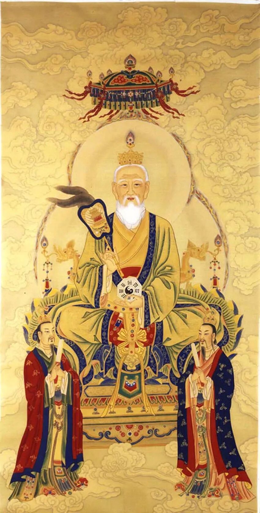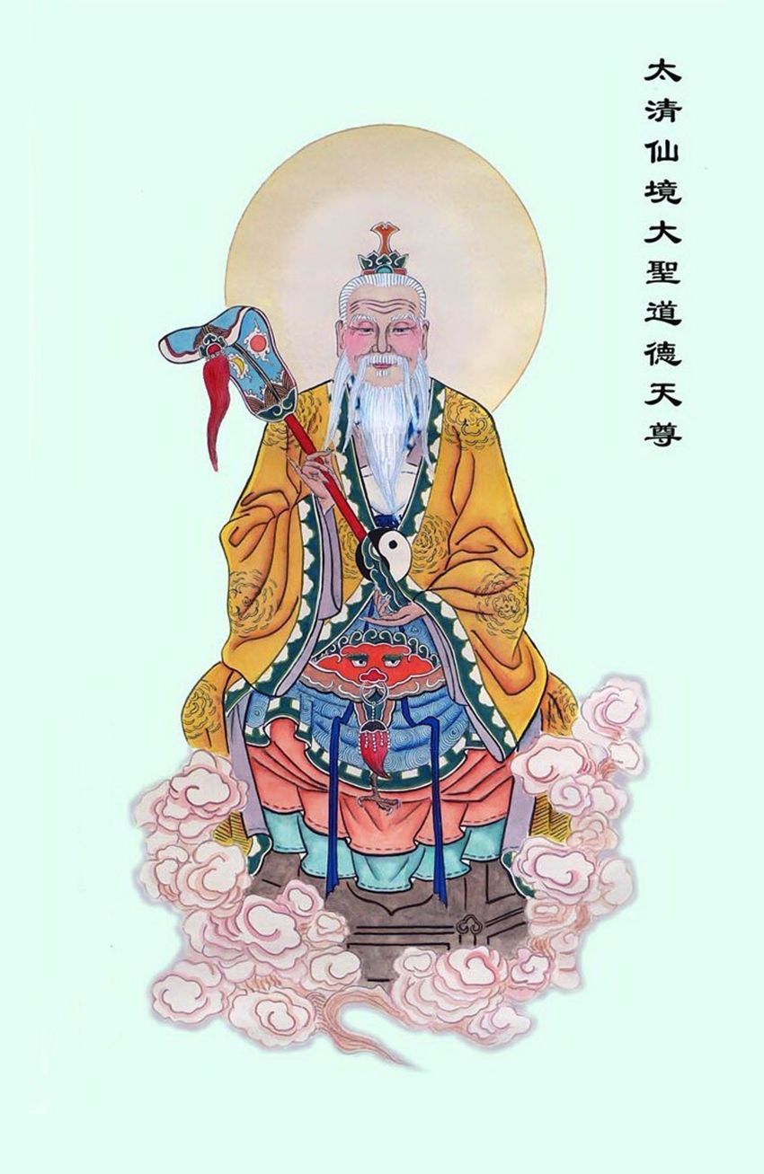 道的显化,就是太上老君,所以《老子想尔注》中说“散则为气,聚则为太上老君”。老君,又以神通变化,于黄帝时代化身为崆峒山的广成先生,传授轩辕黄帝无为之道,故而谓之“帝者师、王者师”;早些劫数前,老君化号为“金真静老天尊”,于本劫化身为周朝的“老聃”,应尹喜真人之,在西游函谷关之前留下了洋洋五千言的《道德经》,后人尊为“道祖”。