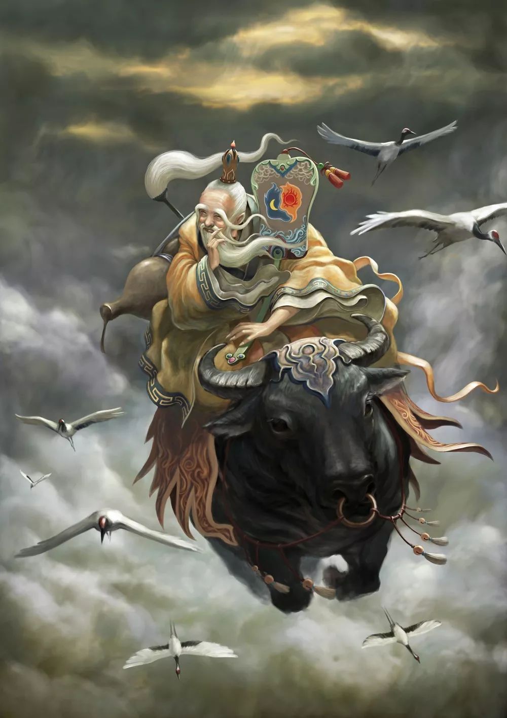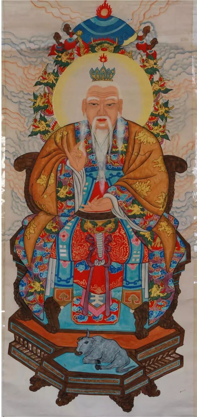2、老君即是大道,却降圣为凡,以白发的老相来开始新的生命,这实际寓意着以终结来返归开始。因为人类都以开始而后终结,老君却以终结作为开端,是修道者返老还婴之相。