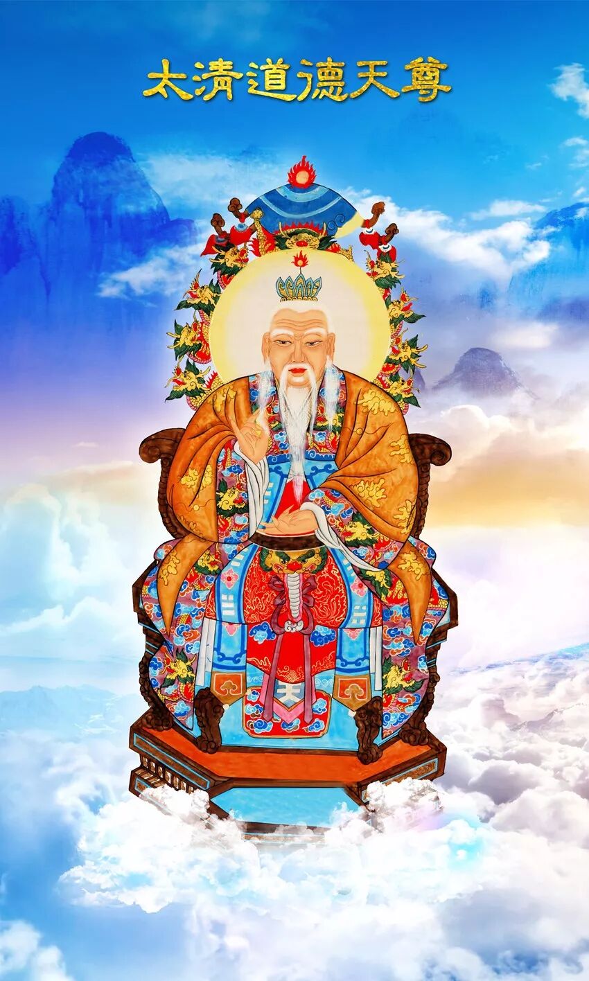 太清仙境道德天尊,又称太上老君。主宰和象征天地形成、万物化生、天生五气、地生五味、人民食之、得以生存的道教第三个大世纪,道教称太初时期。圣诞是二月十五。
