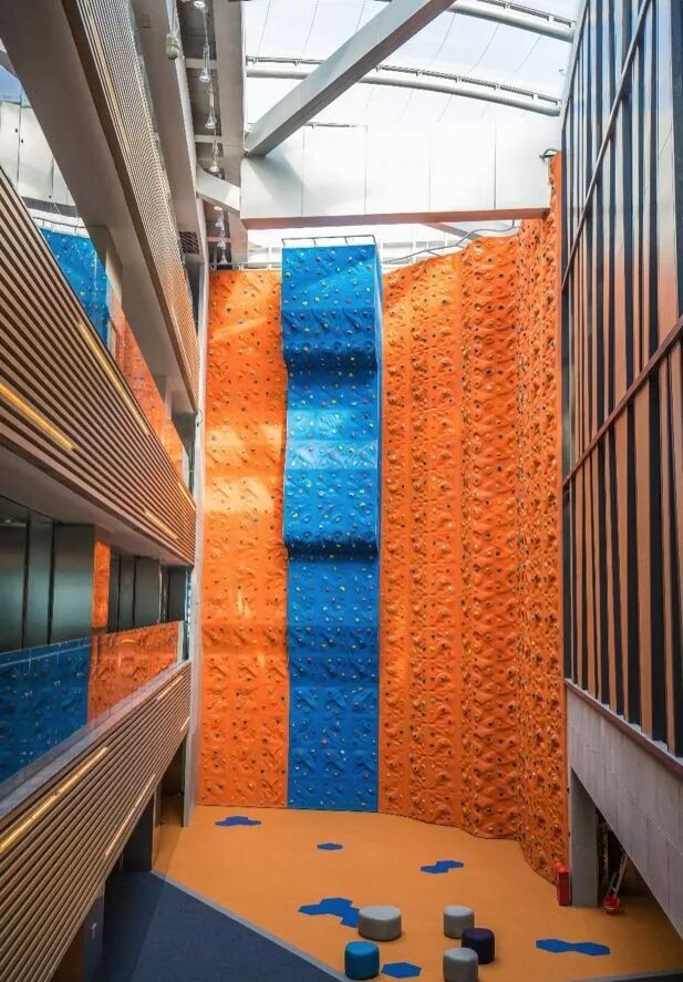 ? 三层楼之高的超大攀岩墙。