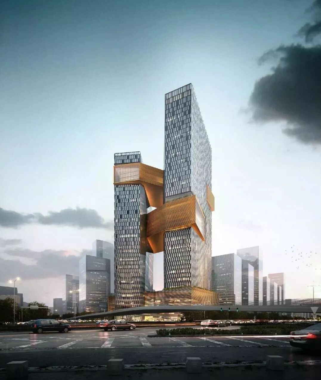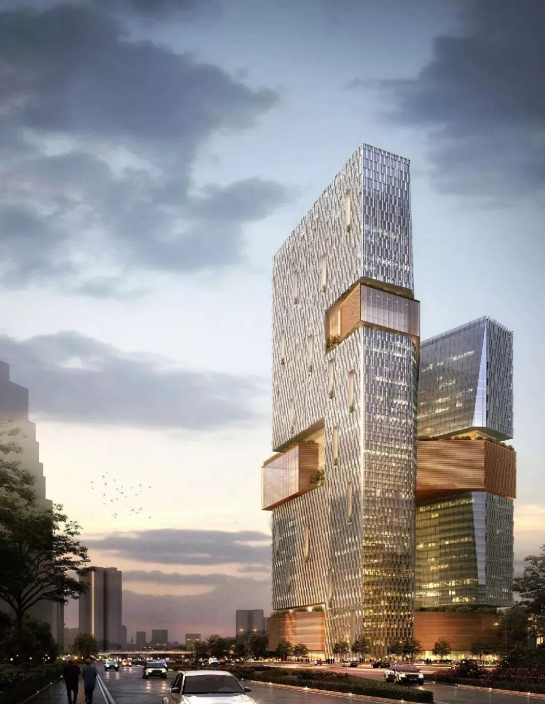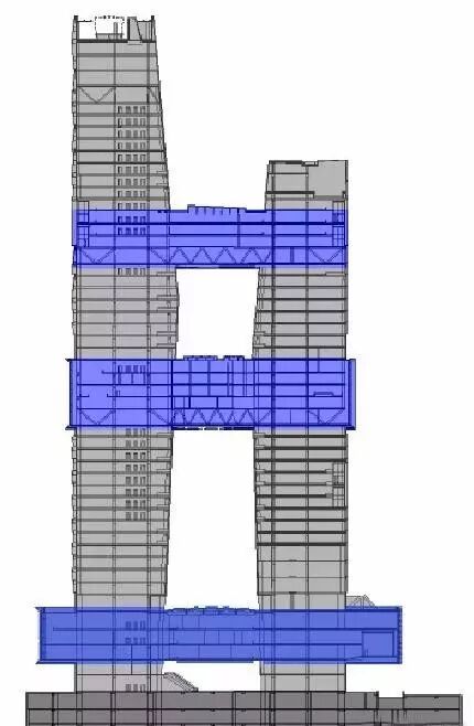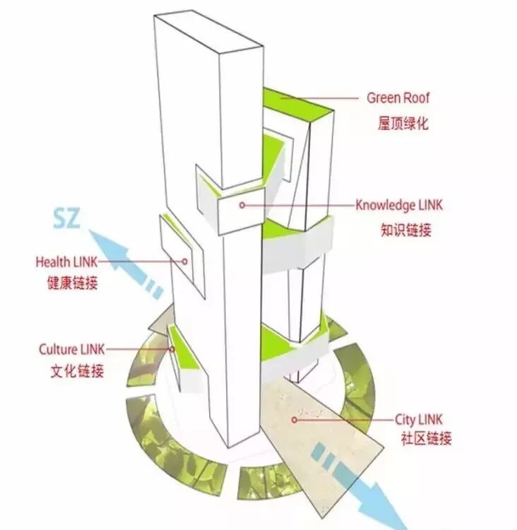 三条“腰带”其实也是三种不同的工作生活空间,包括2~5层的“文化连接层”, 22~26层的“健康连接层”,和35~37层“知识连接层”。