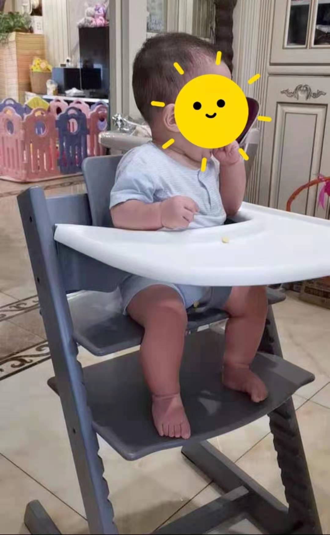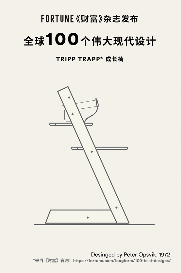 大家好, 终于来更新「平面设计学习日记」 专栏了。今天想和大家分享一篇泛设计相关的文章,不过在开头前我想和大家拉一拉生活家常。其实任何设计都源自于生活家常,人们的发明创造或新型设计,都是从生活中来到生活中去的,这篇文章要分享的内容,也是正是如此。 今年2月我们的宝宝米乐降生了,这不时间一晃,宝宝就快半岁了,已经到了准备加辅食的阶段。对于辅食而言,吃什么其实倒是好办,可是要让米乐老老实实的「吃饭」必须得让她端端正正的坐着才行,因此选择一款坚固实用的宝宝餐椅,必不可少。 我买东西有一个原则,就是喜欢用桑塔纳的预算,买帕萨特的配置。希望买来的东西,能够在满足安全、坚固的基础功能的同时,能尽可能兼具简洁、美观,并提升舒适的使用体验,避免一次性浪费,减少扔掉可惜不扔浪费房屋空间的纠结。 对,我买任何东西,基本上会都会这样的考量,所以每次当家里要新购置家居或者什么东西之前,我都特别纠结的一个人,你说我一个天羯座,咋也有处女座的完美情节呢? 所以,当我基于以上这些苛刻的定语限制后,再来选择产品时,其实可选择的空间就大大缩小了,因为我能很快过滤掉不符合自己预期的产品。 比如这种塑料的一次性儿童餐椅,也就能从第6个月用到一岁左右,这是妥妥的一次性产品呀,虽然价格便宜,但是在我看来,其适用年限太短了,而且过了这个阶段只能丢掉(二手也不好出),实属浪费啊。 再比如,这种儿童餐椅,简洁倒是简洁。只是当小朋友坐上去后,他的脚底是踩空的、没有支撑,这会让小孩特别没安全感,不信你找个高高的凳子悬空做着,感受一下。 所以这种没有踏板的儿童餐椅,也没能深得我心。当然了,像上面这种儿童餐椅个人觉得家用可能不是最好的选择。不过 在一些餐厅却经常看到类似的配置,毕竟其轻便、可重叠,在人流量高的的地方,有很高的实用性。所以,任何产品被设计出来,都有其最佳的适用场景。 然后,下面这种,虽然坚固稳定,但是裆部没有档条的,宝宝很容易滑下去被卡住,基本的安全难以得到保障,所以更不推荐了。 还有一种儿童餐椅,四周有厚厚的软包,把宝宝保护的很好。宝宝坐上去,像是被裹在里面的,但是姿势会很自然的成了葛优躺,个人觉得,这不利于其正确坐姿的培养。如图: 当然了,这种宝安餐椅,可以保证的是,舒适性应该会很不错。只是又违背了我们之前说的一次性浪费问题。基于坐姿培养和浪费这两点,我再三思量后,又放弃了类似款的儿童餐椅。 经过层层选拔和参考,当我看到下面这款椅子时,终于让我眼前一亮: 就这么一款造型简单的椅子,通过其可变换的活动隔板设计及其套件,却能覆盖孩子的整个成长阶段。单从避免浪费、减少一次性用品的角度来说,它自然是合格的。 当宝宝6个月以下时,可借助新生儿套件,让她躺里面。当然,我们家的米乐已过了这个年龄阶段,所以这个功能点不是特别重要。如图▽ 当孩子6月需要喂辅食时,借助餐盘、围栏、安全带套件,孩子可以完全稳固的坐在里面。如图▽ 当孩子再长大一些1~3岁,能够逐渐开始自主进食后,可以把孩子拉入餐桌和达人同坐吃饭,增进情感。如图▽ 当孩子上幼儿园,甚至小学、初中时,这把椅子都能一直伴随着他的成长。如图▽ 甚至是当孩子成年以后,这把椅子依然能够解决,如何「坐好」的问题,如图▽ 正是设计师Peter Opsvik,对生活的的细致观察、以及对人体工学的精心研究,才成就了这把可解决了孩子在成长中每个阶段坐姿问题的椅子。当我看完其整个设计思路、以及使用场景后,正好完美符合了我之前的选购预期。就是这把儿童成长餐椅的设计,被《财富》杂志评为“100个伟大现代设计之一”, 另外,为了孩子安全,这款椅子还配得有软软的坐垫。 与此同时,接触地面的两个脚腿末端,还配得有防倒配件。当小孩子调皮捣蛋,用脚蹬桌子时,也能很好的保护椅子不往后仰。这个设计小细节,将安全性能又拔高了一步。 这把椅子,在安全、牢固的基础功能满足后,同时兼具了简洁、美观、舒适,可调节高度的脚踏,让孩子坐着更有安全感。当然,其最重要的一点,就是能够重复使用,从婴儿到成年阶段,能够陪伴孩子一起成长,放眼望去,只有这款椅子有这本领。所以,买这款宝宝餐椅(成长椅),这是妥妥的:低碳环保不浪费,经济适用又不贵啊。 当我仔细看了又看后,接下来就该了解产品价格的环节了,我一看售价。我的天,这和想象中的【经济适用又不贵】出入有点大啊,看来是我又草率了。 这是裸椅的价格▽ 这是【椅子+围栏+安全带+餐盘】套餐的价格▽ Stokke是这款椅子的原创品牌,属于欧洲挪威品牌。虽然产品设计很优秀,但由于是进口品牌、加上层层物流、关税来到中国后,这使得其固有成本就变高了,确实有点小贵。 当然卖得贵不是产品问题,是我的问题。所以,接下来, 把目光投向纯国产的同款产品,我相信依托中国现有的工业技术,这样的椅子并不能够造吧。然后,我就找到了下面几个品牌。 这是【椅子+围栏+安全带+ 餐盘+坐垫】套餐的价格▽ 优惠后,实际入手价:979元。相比Stokke的同款,至少省了2100+,瞬间觉得赚大了。所以对家境贫寒的我而言,国货才是yyds 然后,我们家米乐坐在上面也是稳妥妥的,端端正正的,你再看看这胖嘟嘟小脚丫踩得多踏实呀,小手很自然的放在了餐盘上。哈哈哈哈~▽ △这图是老婆,
