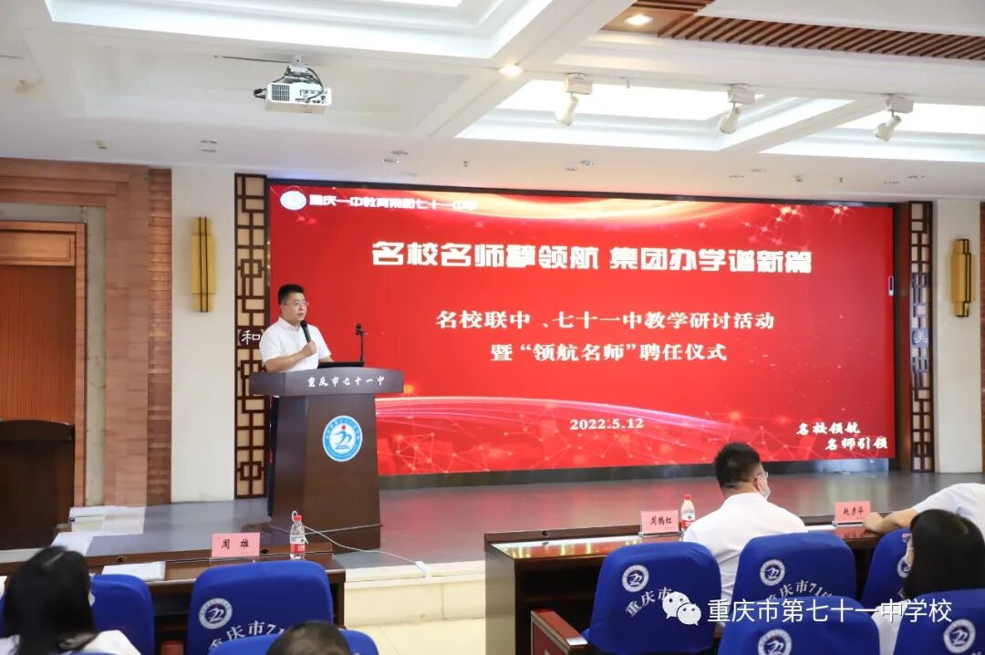 重庆一中教育集团71中副校长周雄主持联合教学研讨活动暨“领航名师”聘任仪式。