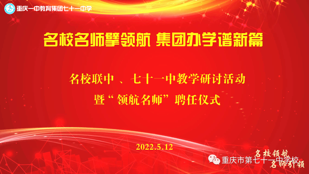 重庆一中教育集团71中又有“大动作”。5月12日,重庆一中教育集团总校长,重庆一中党委书记、校长唐宏宇,副校长赵彦华、周鹊虹率团深入集团校71中,指导名校联中、71中联合教学研讨活动,并出席“领航名师”聘任仪式。