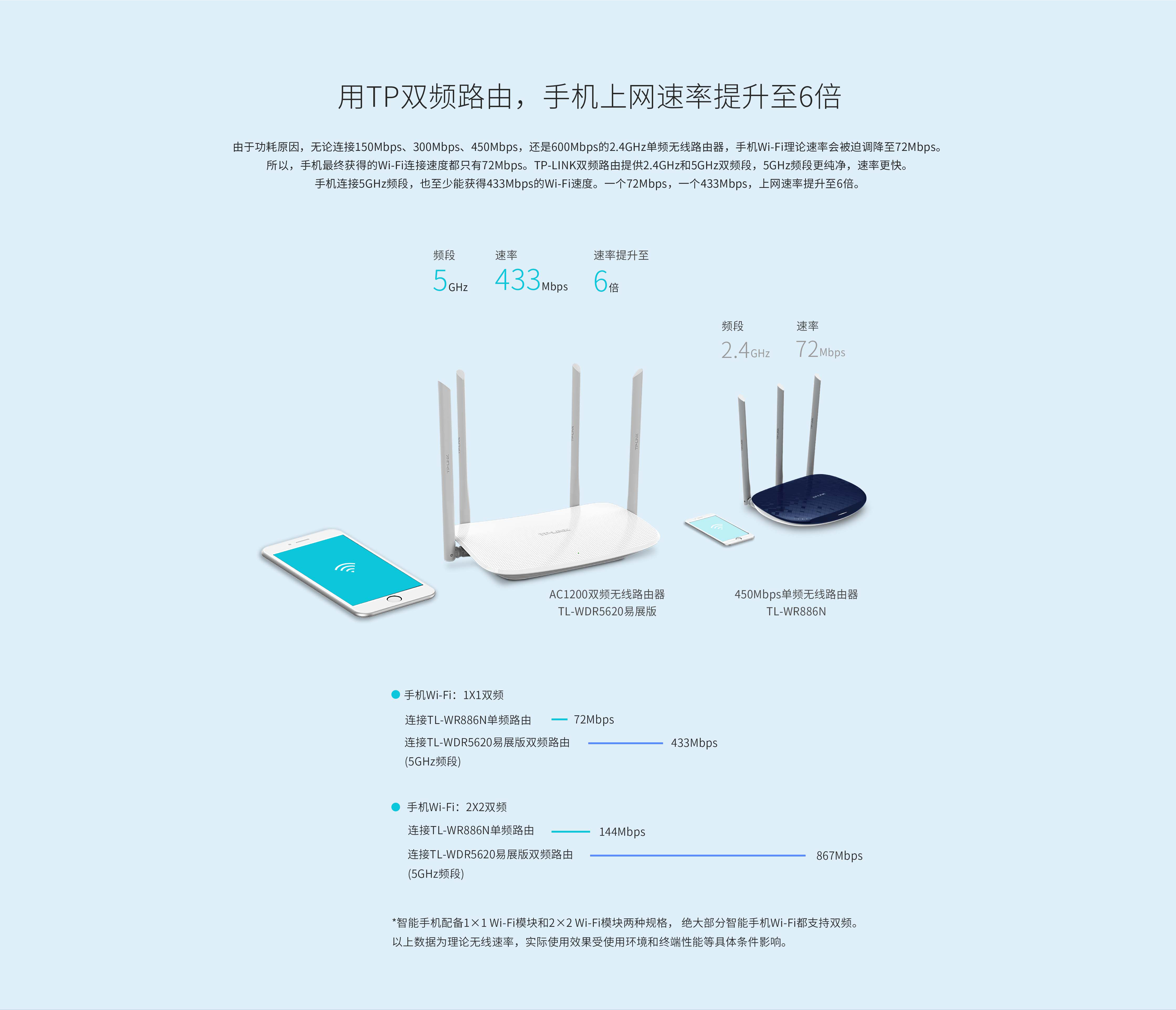 TL-WDR5620易展版在2.4GHz频段无线速率可达300Mbps,
