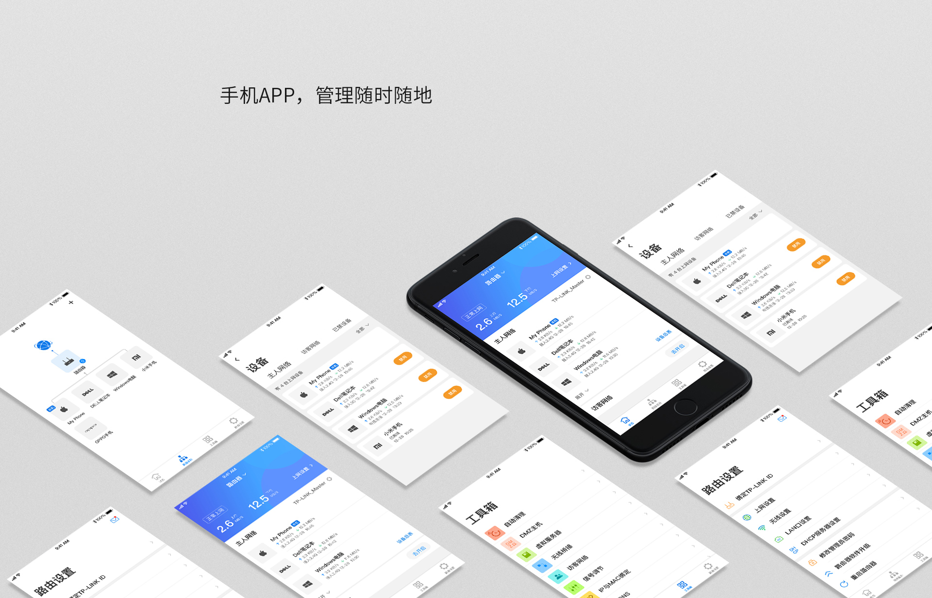 通过TP-LINK手机APP,轻松掌控家中网络和设备,状态一目了然,在线升级、