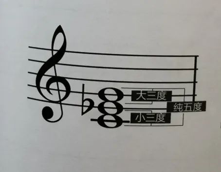 “根音”到“三音”是小三度,“三音”到“五音”是大三度,从“根音”到“五音”同样是纯五度。小三和弦的音色比起大三和弦要暗一些。